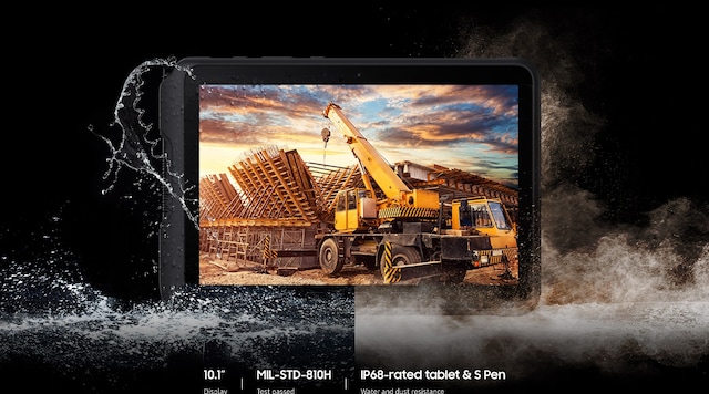 Galaxy Tab Active4 Pro er pålitelig under tøffe forhold. Med Corning® Gorilla® Glass 5, en IP68-klassifisering og MIL-STD-810H-kompatibilitet, er 10,1-tommers nettbrett motstandsdyktig mot riper, vann og støv. Bærbar og kompakt, den er bygget for å tøffe dagen din.