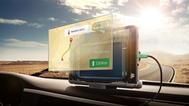 Galaxy Tab Active4 Pro forblir på og får strøm selv uten batteri. Når du forlater nettbrettet i høy varme inne i et kjøretøy eller trenger å være ladet og tilkoblet i en kiosk, bruk No Battery Mode for å holde den drevet og unngå et hovent batteri. Bare koble til en strømkilde og fortsett å jobbe.
