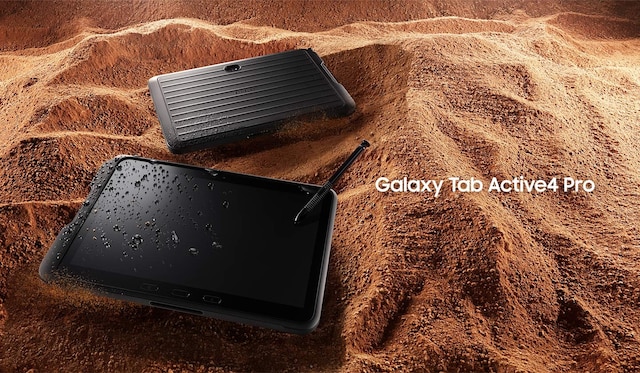 Slipp løs produktiviteten med den bærbare, holdbare og sikre Galaxy Tab Active4 Pro uansett hvor arbeidet ditt tar deg.