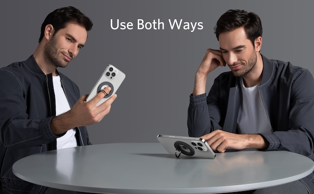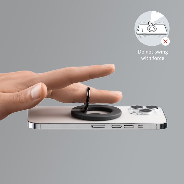 Ringholderen leveres med sterke magneter som festes på baksiden av din iPhone for å gi en sikker passform. Nå kan du sende tekstmeldinger, ta bedre bilder eller se videoer med bare én hånd. (Merk: Bruk uten deksel eller med et iPhone-kompatibelt magnetisk telefondeksel)