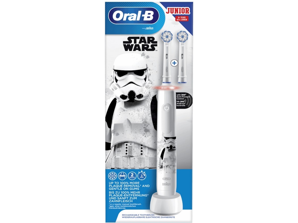 Den elektriske tannbørsten Oral-B Junior for barn med karakterer fra Star Wars er utformet i samarbeid med tannleger for å gi en suveren rengjøring.