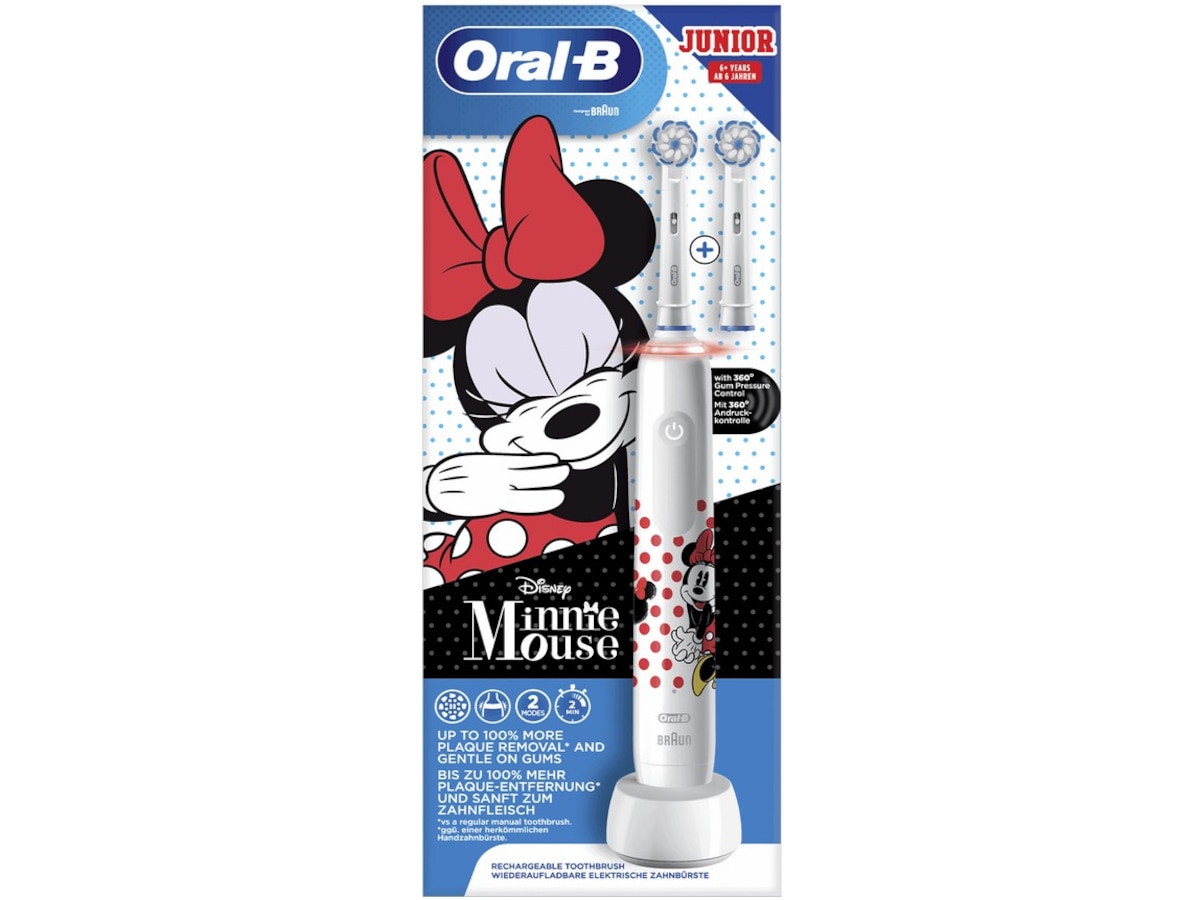 Den elektriske tannbørsten Oral-B Junior for barn fra 6 år med karakterer fra Minni Mus er utformet i samarbeid med tannleger for å gi en suveren rengjøring.