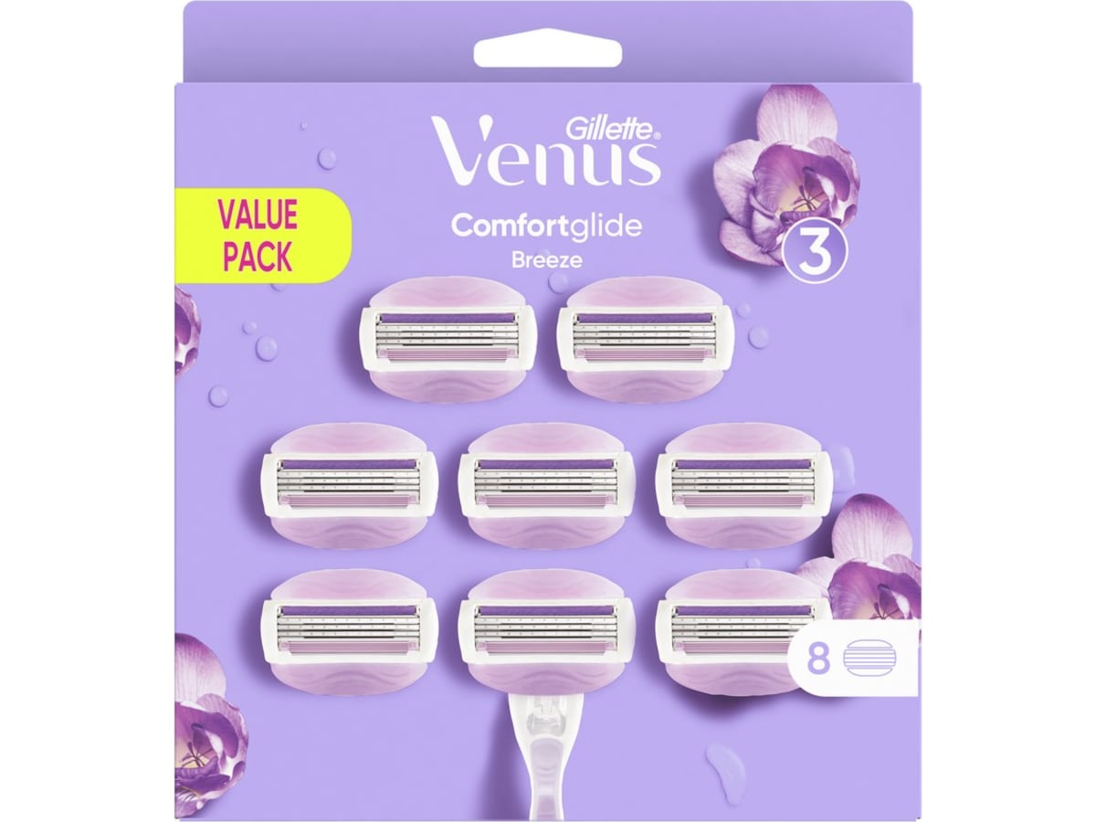 - BLADREFILLER: 8 Comfortglide Breeze bladrefiller til kvinner, hvert med 3 innebygde blader som gir en glatt og tett barbering som varer