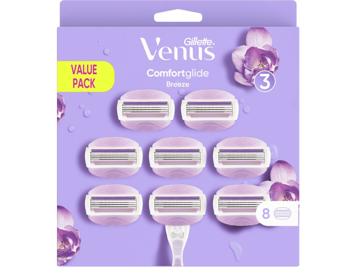 - BLADREFILLER: 8 Comfortglide Breeze bladrefiller til kvinner, hvert med 3 innebygde blader som gir en glatt og tett barbering som varer
