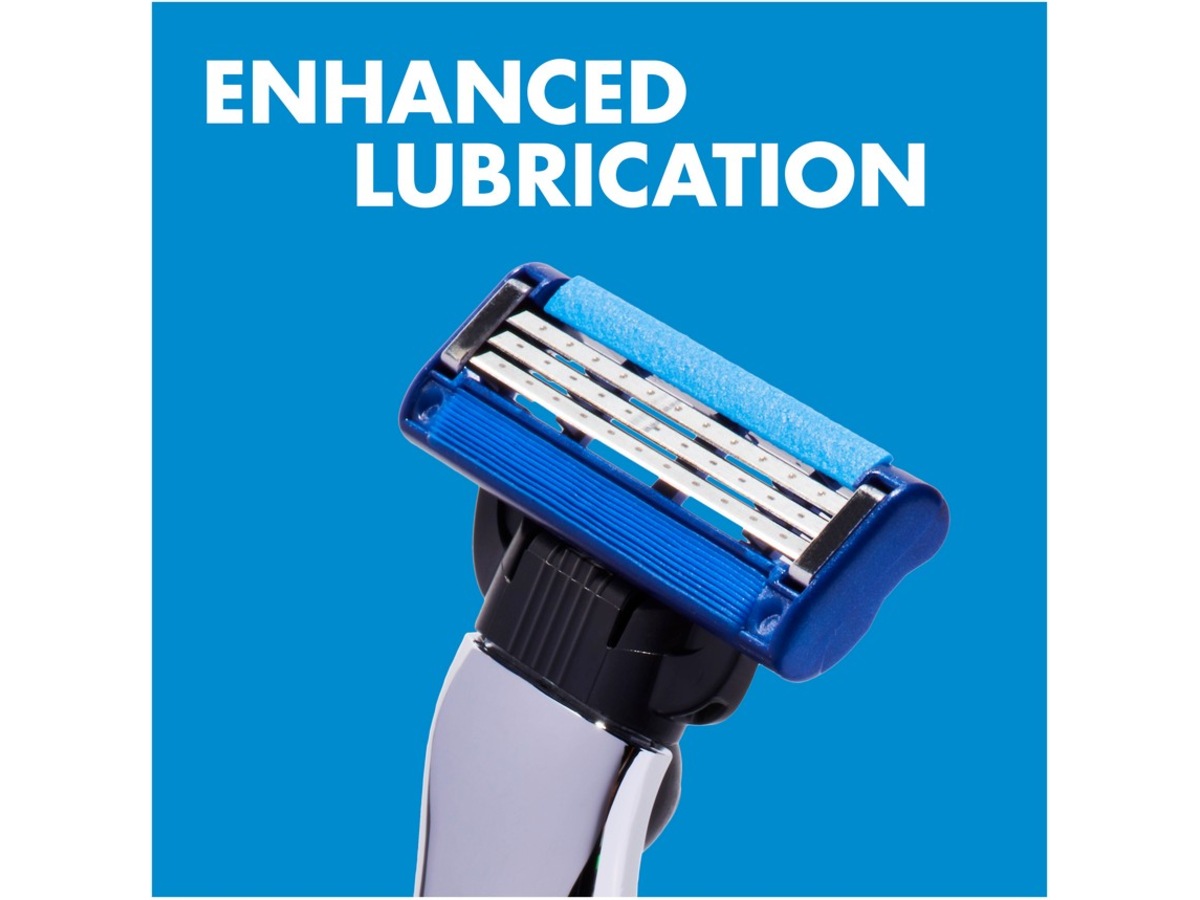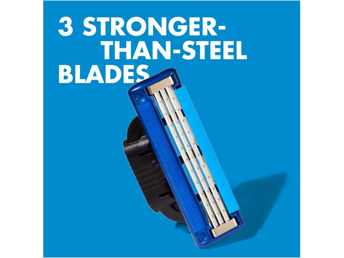 Med tre blader som er sterkere enn stål og som holder seg skarpere lengre (vs. Sensor3). Alle Mach3-bladrefiller passer til alle Mach3-håndtak.