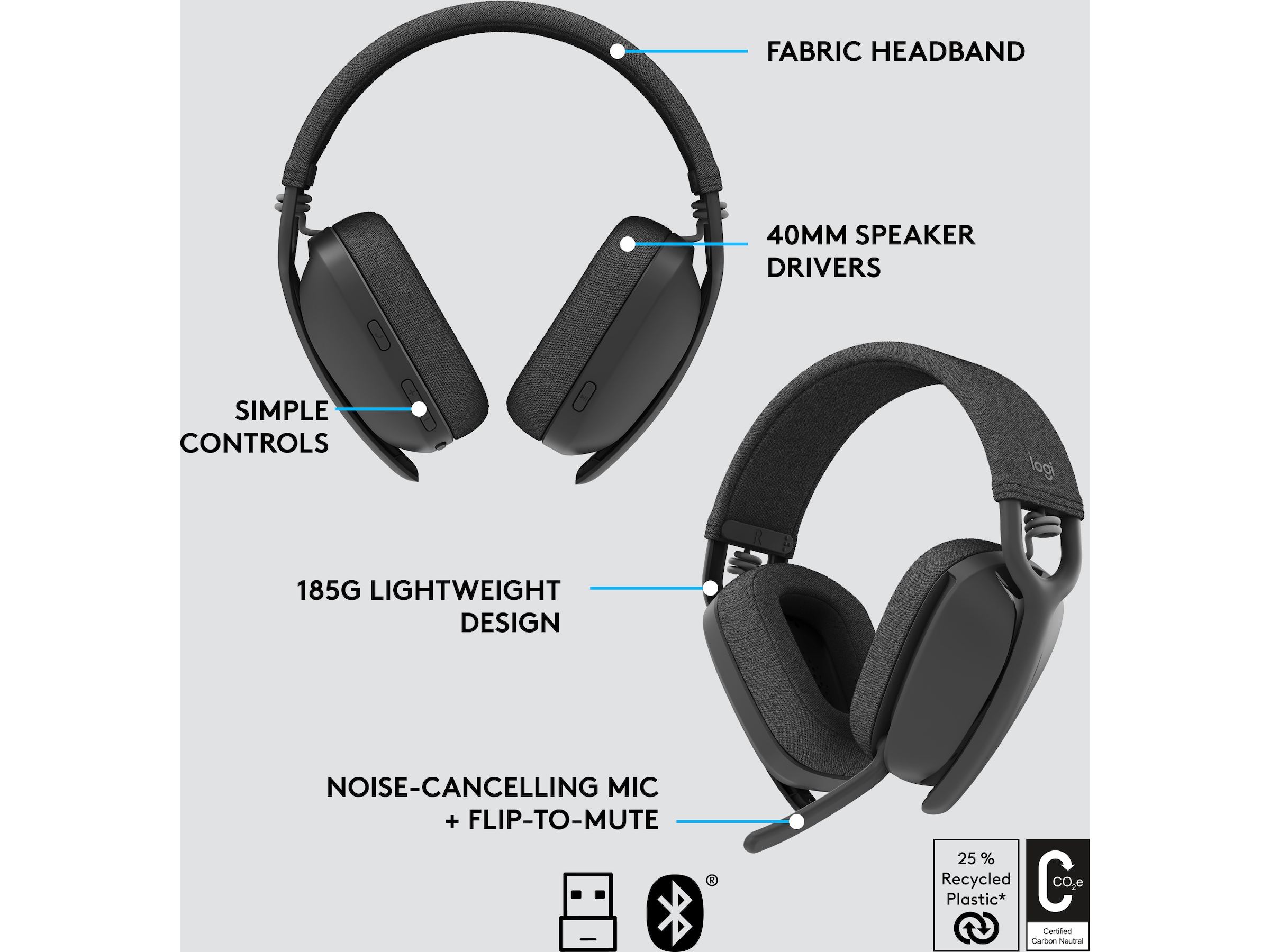 Oppslukende lyd for arbeid eller spill Uttrykk din stilfølelse med Zone Vibe 100 trådløse hodetelefoner. Zone Vibe er perfekt for hjemmekontoret og leverer oppslukende lyd for arbeid eller spill. Gjør møter mer livaktige med fyldig bass, lyd med lav forvrengning og støydempende mikrofon. Kompatibel med populære videoplattformer som Microsoft Teams, Google Meet og Zoom.