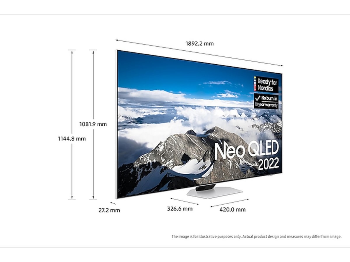 * Når du kjøper en 2022 QLED, Neo QLED eller Neo QLED 8K tilbyr vi 10-års garanti mot skjerminnbrenning. Garantien er gyldig i 10 år fra kjøpsdatoen. For at garantien skal gjelde, kreves en kopi av kjøpskvittering samt registrering på Samsung sin hjemmeside innen 90 dager etter kjøp. Gyldig 1.4.2022 – 31.8.2023.