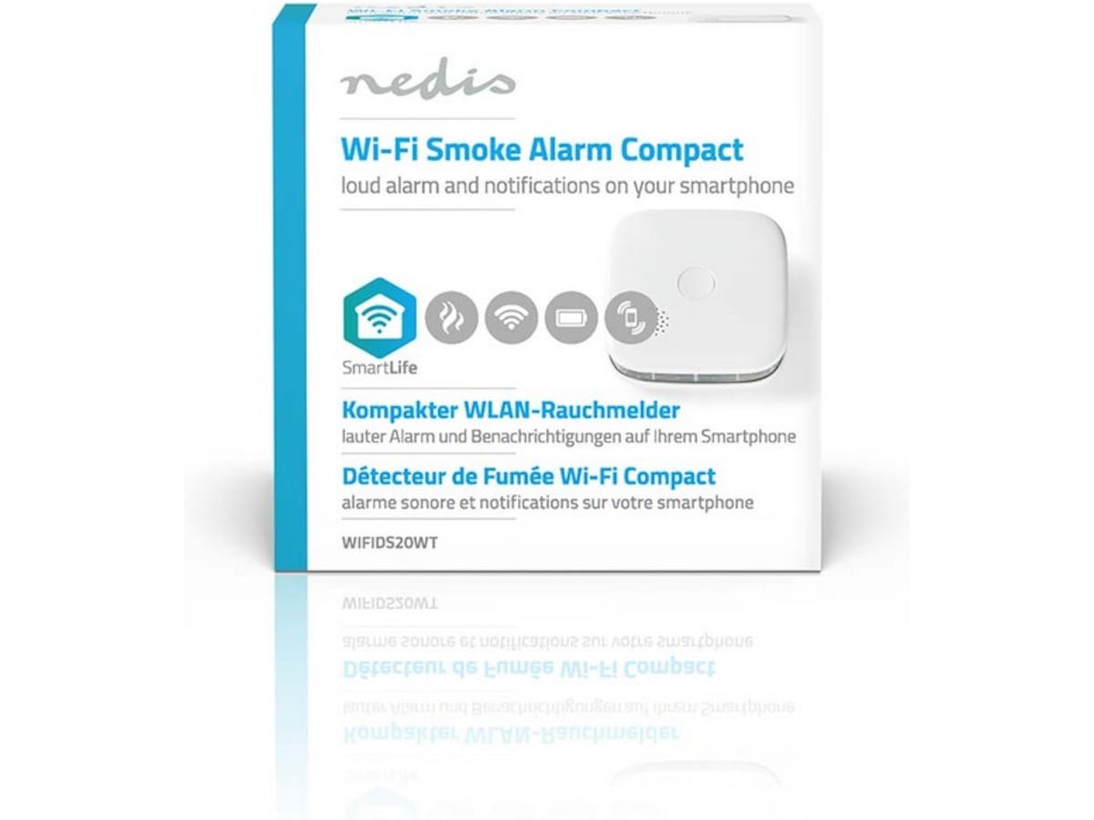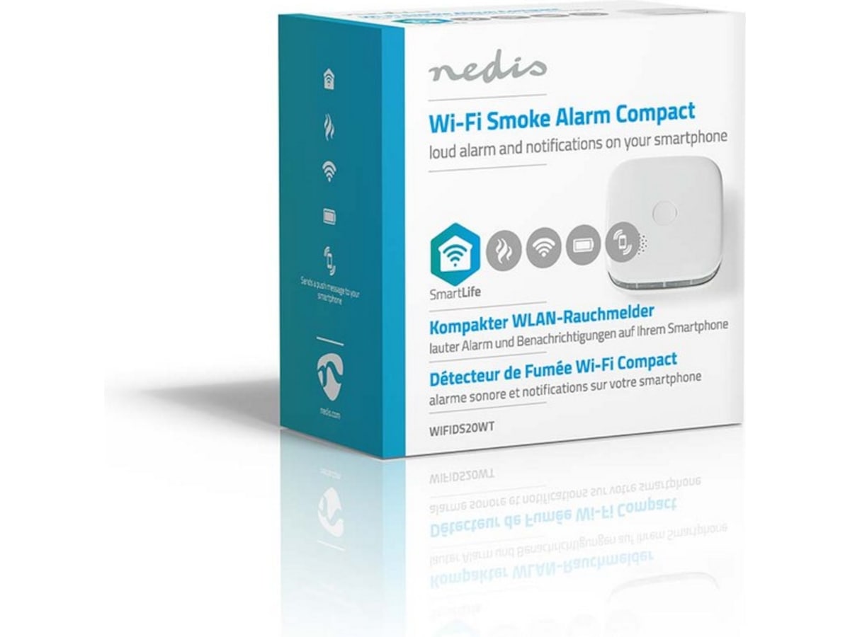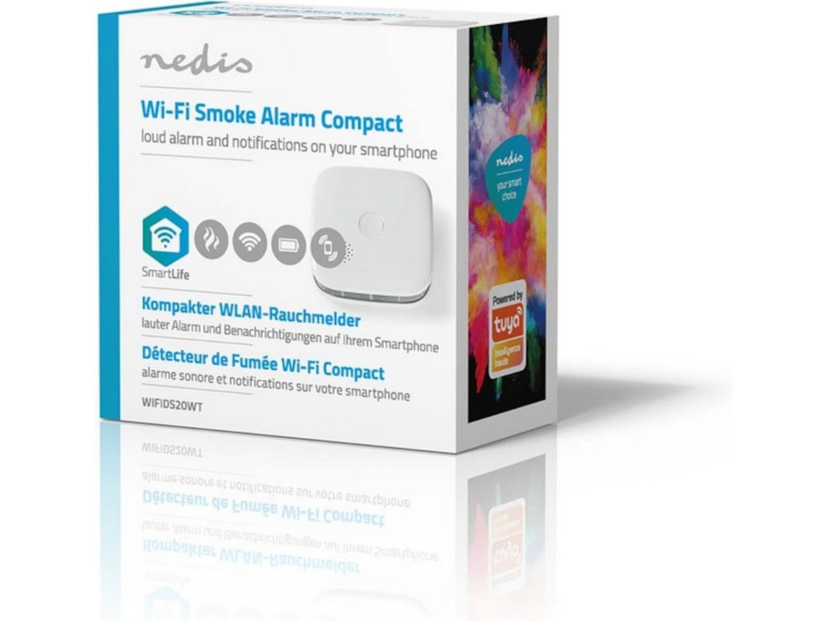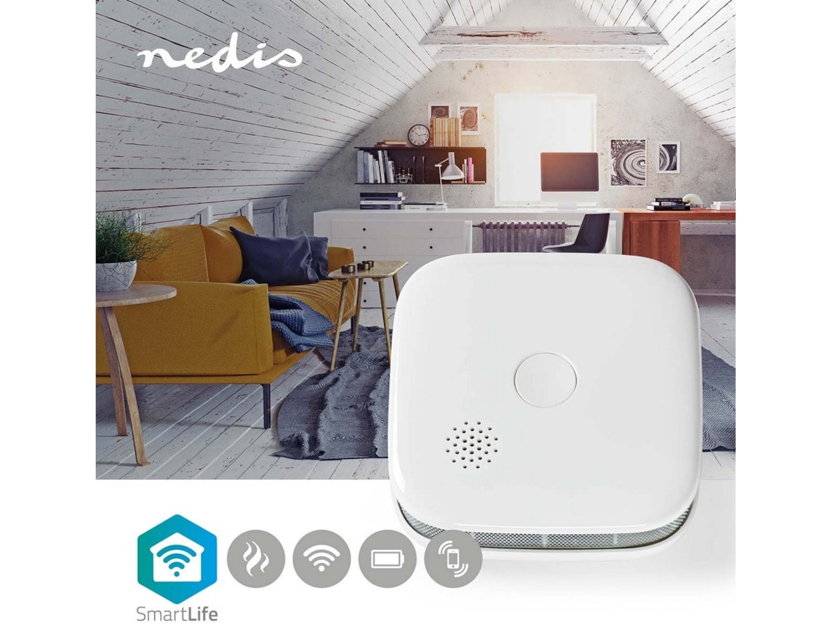 Denne smarte røykvarsleren fra Nedis® gjør at du alltid føler deg trygg, selv når du er borte fra hjemmet. Når det oppdages røyk, sender denne enheten en melding til smarttelefonen og varsler med en høy alarm.