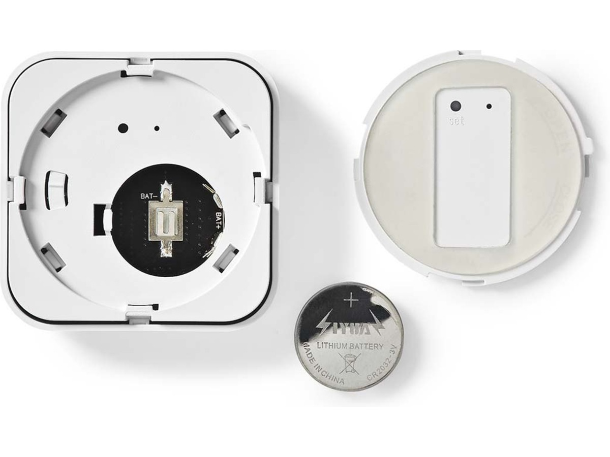Med de små målene på 50 x 50 mm kan du enkelt plassere den et sted der du alltid vil ha tilgang til enkel kontroll, eller montere den på en sikker måte ved hjelp av den dobbeltsidige teipen. Batteriet som følger med, varer i opptil 12 måneder ved gjennomsnittlig bruk. Du vil motta et varsel når batterinivået er lavt, slik at du kan bytte det når det er nødvendig.