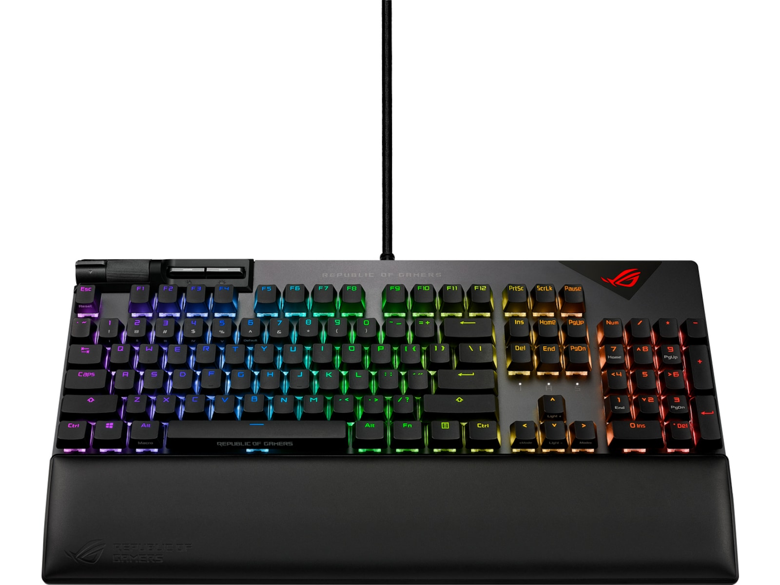 It’s loaded with a host of innovations, including ROG NX mechanical switches, PBT doubleshot keycaps, sound-dampening foam, 8000 Hz polling rate, 0.125 ms response time, dedicated media controls and detachable wrist rest.
