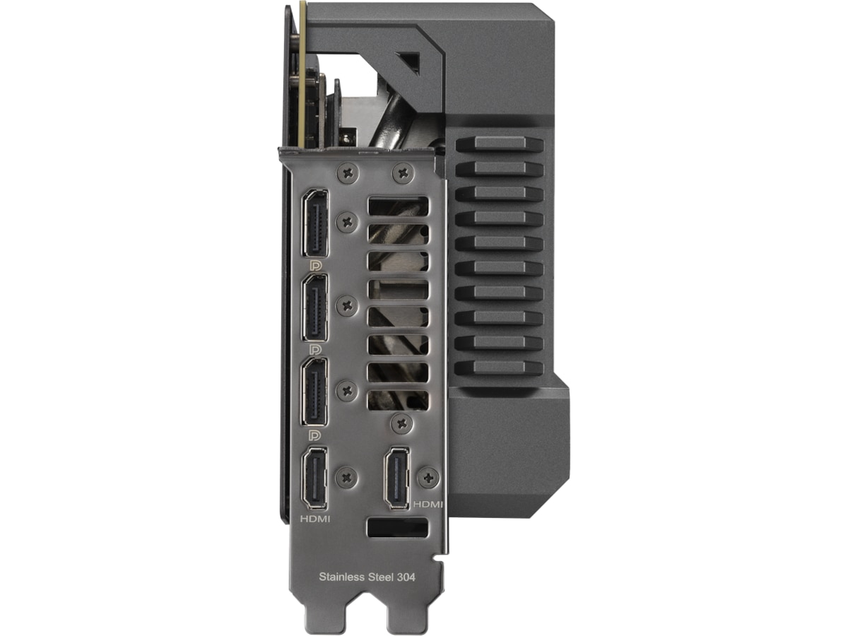 A large vapor chamber and heatpipe combo efficiently wicks heat away from the GPU, memory, and power components.