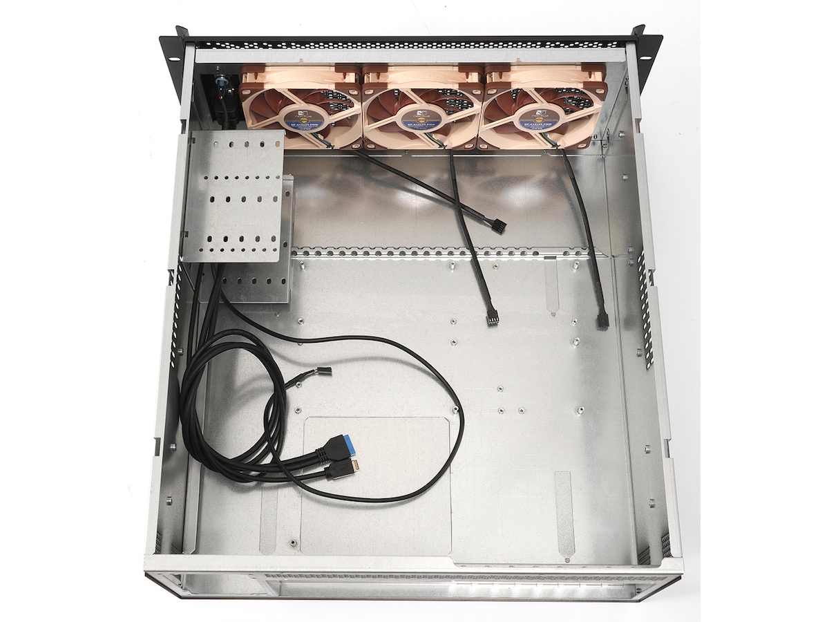EATX og 360mm vannkjølingsstøtte. 4U 19" rack, 50cm dypt, uten vifter