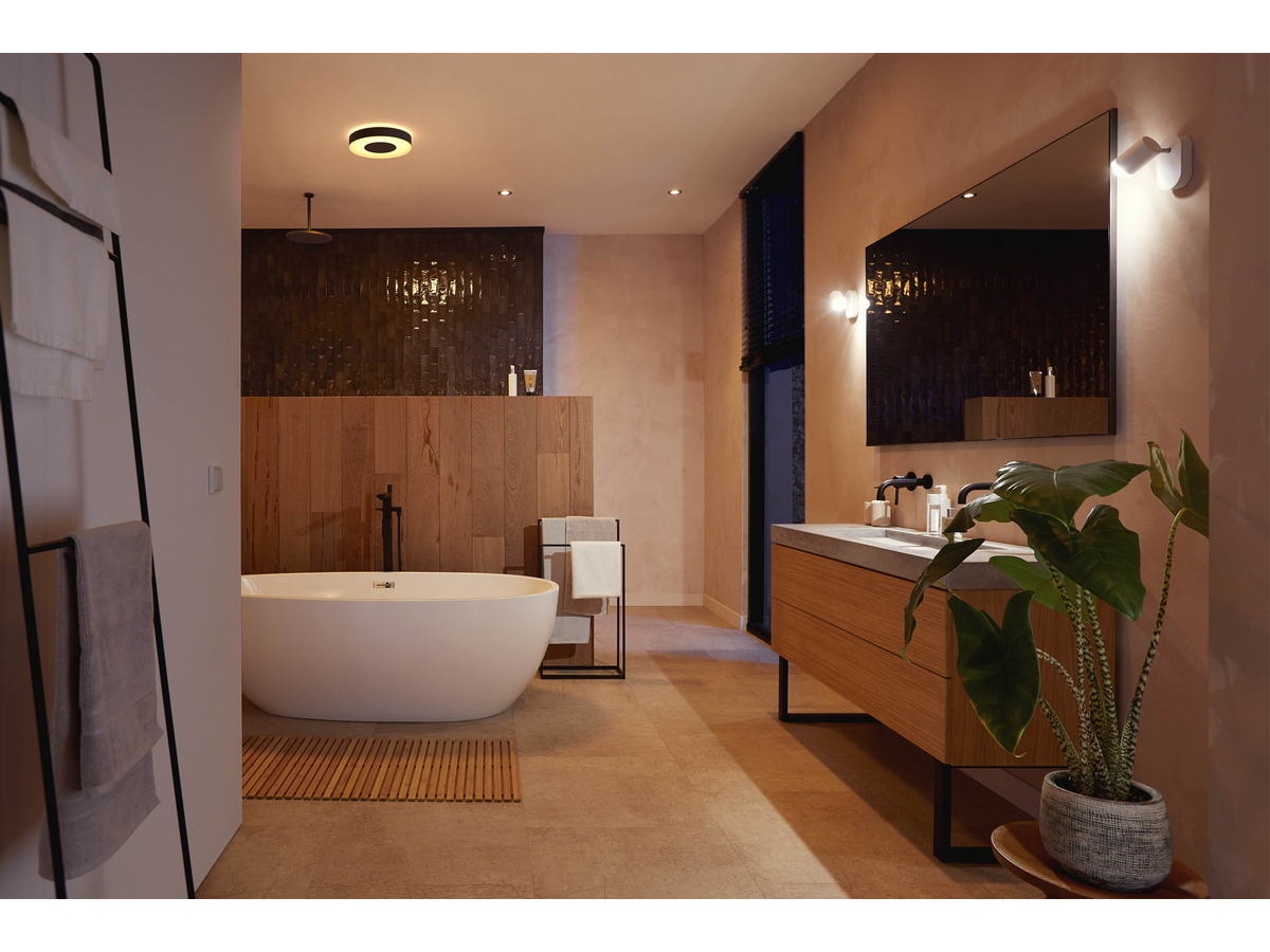 Gi nytt liv til badeværelset ditt med Philips Hue Xamento, en serie av lamper spesialdesignet for å gi deg fantastisk lys på baderommet.