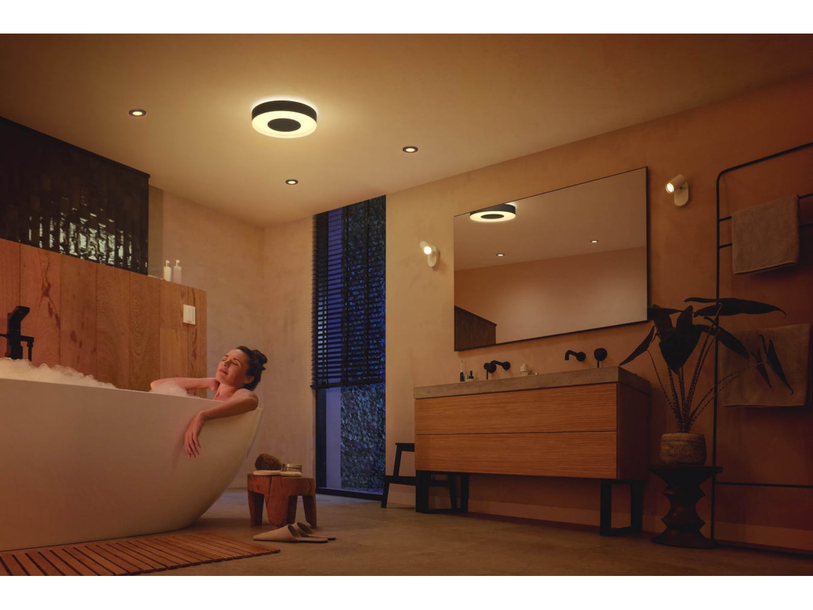 Denne runde innbyggingsspotten i svart har et diskret og moderne design som passer naturlig inn i alle hjem. Det justerbare hodet gjøre det enkelt å rette lyset i den retningen du vil for å f.eks. opplyse skap og nips. Med White og color ambiance er det mulig å tilpasse din belysning til alle daglige rutiner og nyanser. Bruk forskjellige lysscener til å forvandle baderommet til et luksuriøst spa når du skal slappe av i badekaret på en søndag eller la lystemaet fra en tropisk øy hjelpe deg med koble av etter en lang arbeidsdag. Riktig belysning er spesielt viktig i de skiftende og mørke årstider vi opplever i norden. Bruk farget lys for å skape den helt riktige stemningen, velg kaldt hvitt lys for å få energi på en mørk vintermorgen og lag en varm gylden tone til dine aftenrutiner på baderommet før sengetid. Xamento er IP44-klassifisert noe som gjør den sikret mot vannsprut.