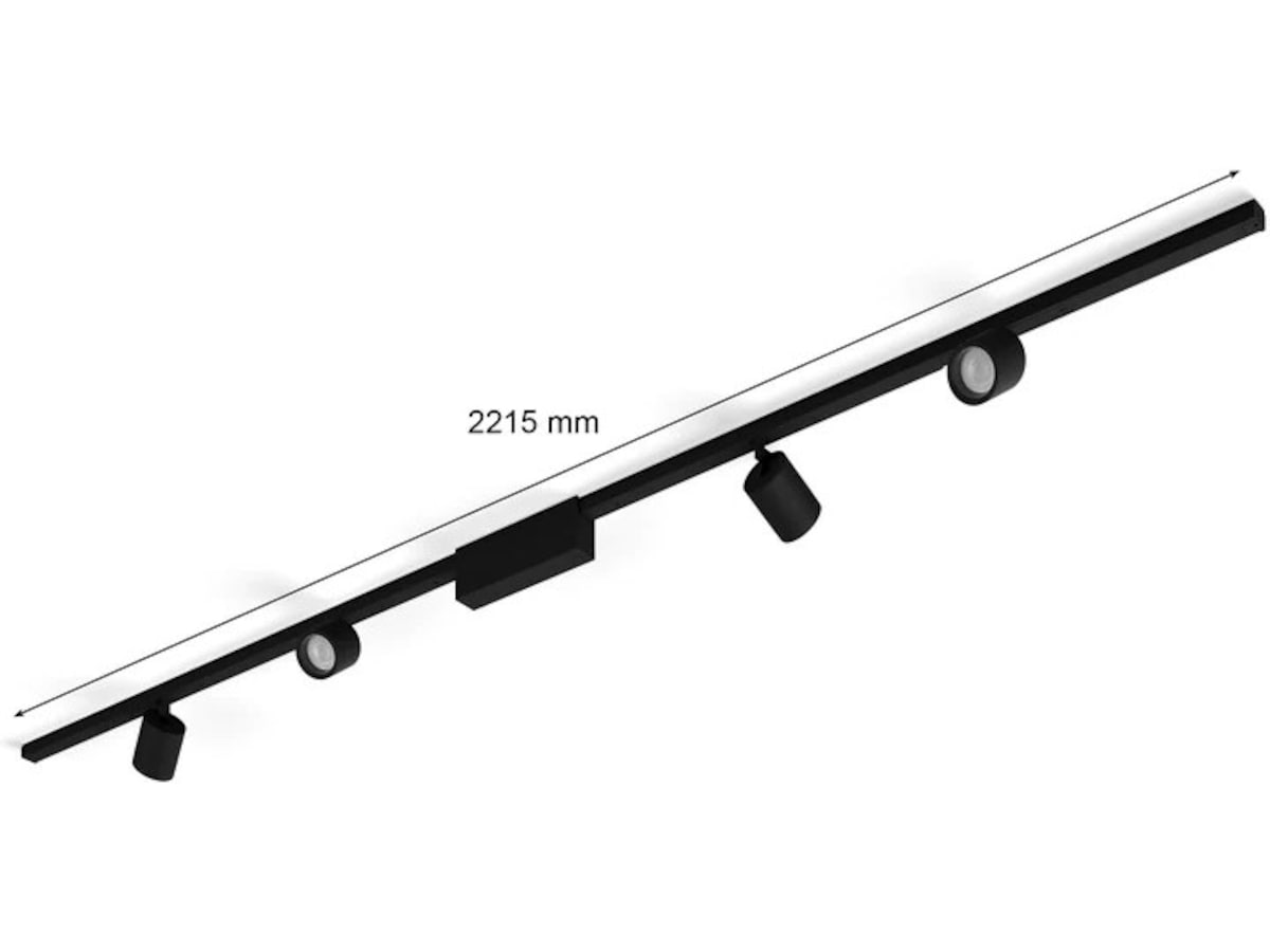 Dette skinnnebelysningssettet i svart for veggen gir deg mulighet for å få det perfekte skinnesystemet for vakker, fargerik stemningsbelysning til veggene i hjemmet ditt. Settet inkluderer to 1 meter skinner, 4 Cylinder spotter og en strømforsyning som er plassert mellom to skinner.