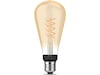 Philips Hue White glødelyskilde har gjennomsiktig glass med synlig filament-LED som skaper en koselig atmosfære rundt lyskilden.