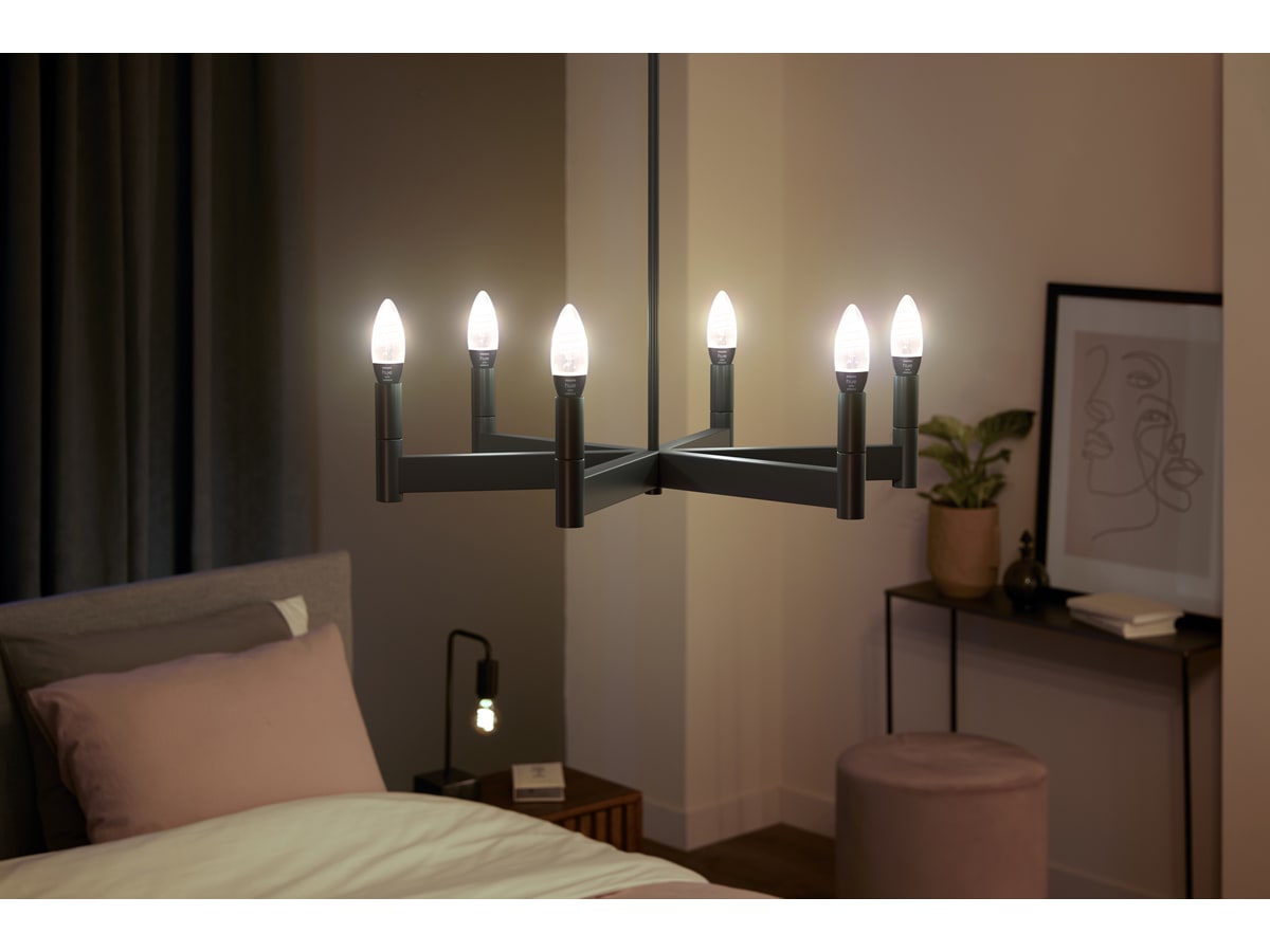 Med en snurret glødetråd som kan sees i det gjennomsiktige glasset kombinerer filamentlyskildenes moderne funksjoner med en stilren og elegant vintagelook. Denne lille mignonpæren i E14 er perfekt for å gi en klassisk rafinert stemningsbelysning til lysekroner og mindre armaturer. Du kan også plassere flere filamentlyskilder i grupper og justere hver enkelt lyskilde for å skape den perfekte stemningen for hjemmet ditt og dine behov. Denne lyskilden er en del av White-serien og gjør det mulig for deh å dimme hvite belysningen til den ønskede lysstyrken. Du kan enkelt styre og justere lyset via Hue-appen og alle Hue-tilbehør. Bed å legge til en Hue-bridge får til tilgang til alle funksjoner i Hue-belysningssystemet.