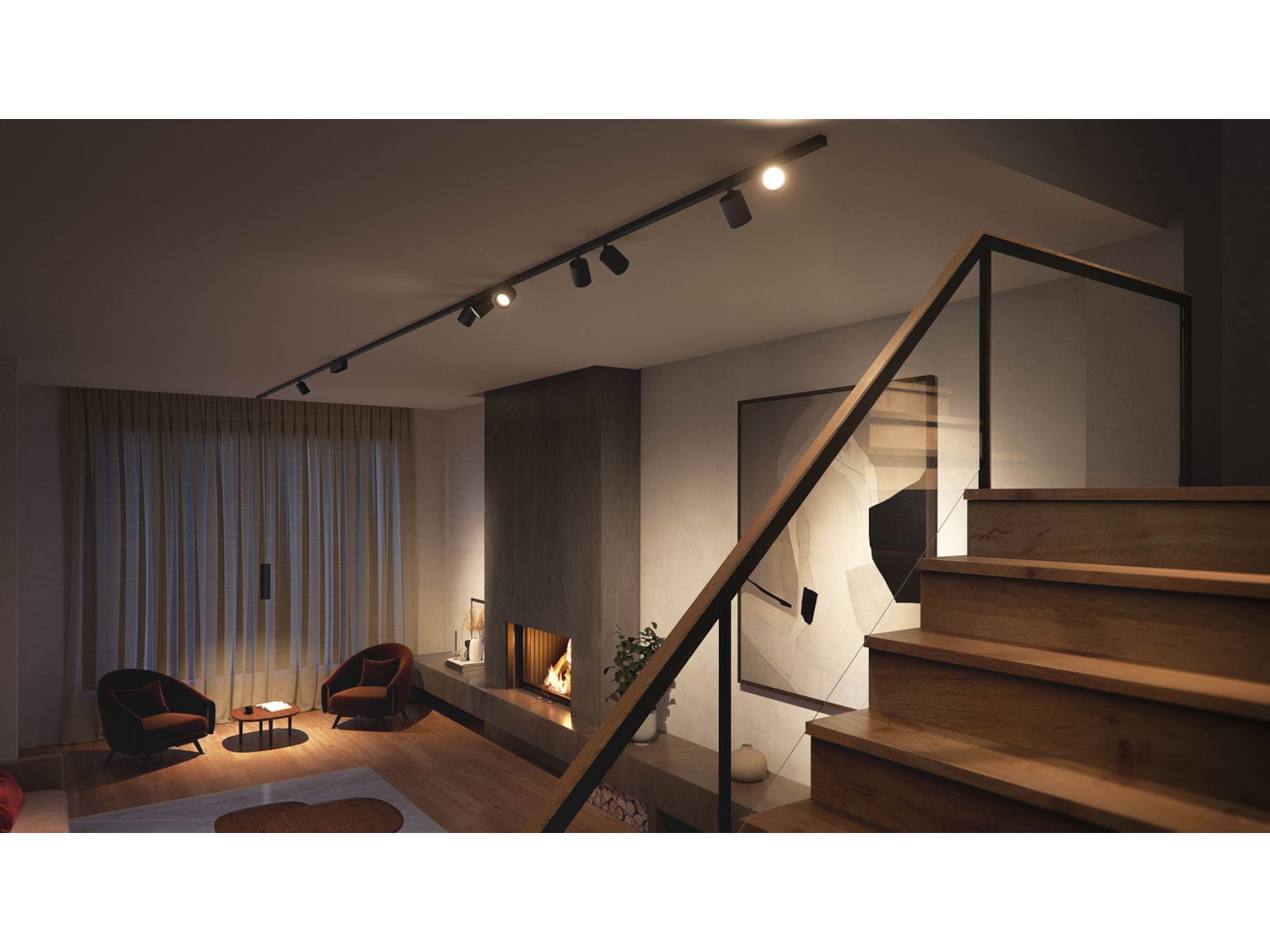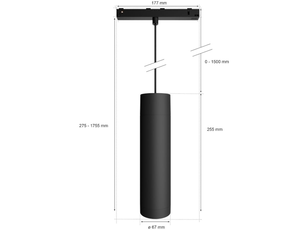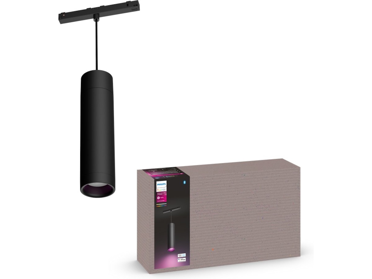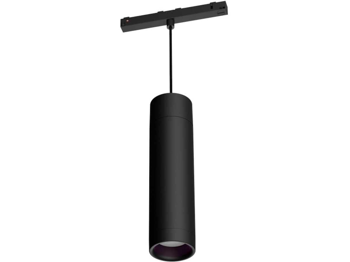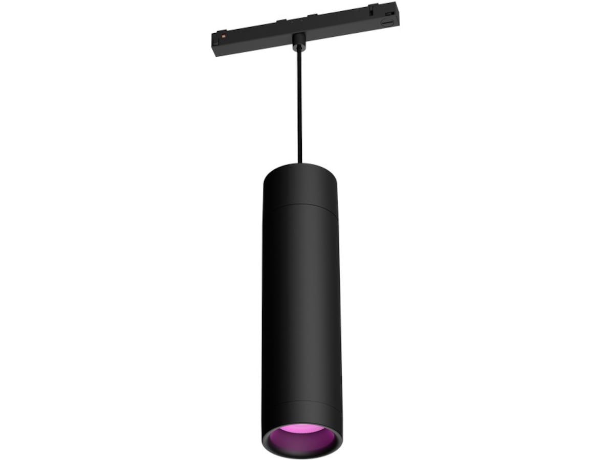 Denne lange elegante taklampen i svart passer perfekt inn i Perifo-skinnen og kan vris og vinkles til den ønskede retningen for å lyse opp rommet med fargerik smartbelysning. Perfio er det mest allsidige smarte belysningsløsningen noensinne og gjør det mulig for å deg å lage ditt eget belysningsdesign gjennom å velge selv hvordan det skal se ut – hvor lang skinnen skal være og hvilke lamper du skal bruke. Med fargekompatible spotter, taklamper, lyskinner og mye mer, kan du sette sammen akkurat den kombinasjonen som passerr i hjemmet ditt og skape en god stemning for alle dine daglige aktiviteter og behov. Velg om du vil ha skinnesystemet i taket på veggen og deretter kobler du på strømmen og klikker lampene på plass i skinnen. Dette klikkdesignet gjør at du kan legge til flere og flere nye lamper, flytte de rundt og endre layouten slik at de alltid passer dine behov. Denne sylinderformede spot passer bare til Peritoskinnen.