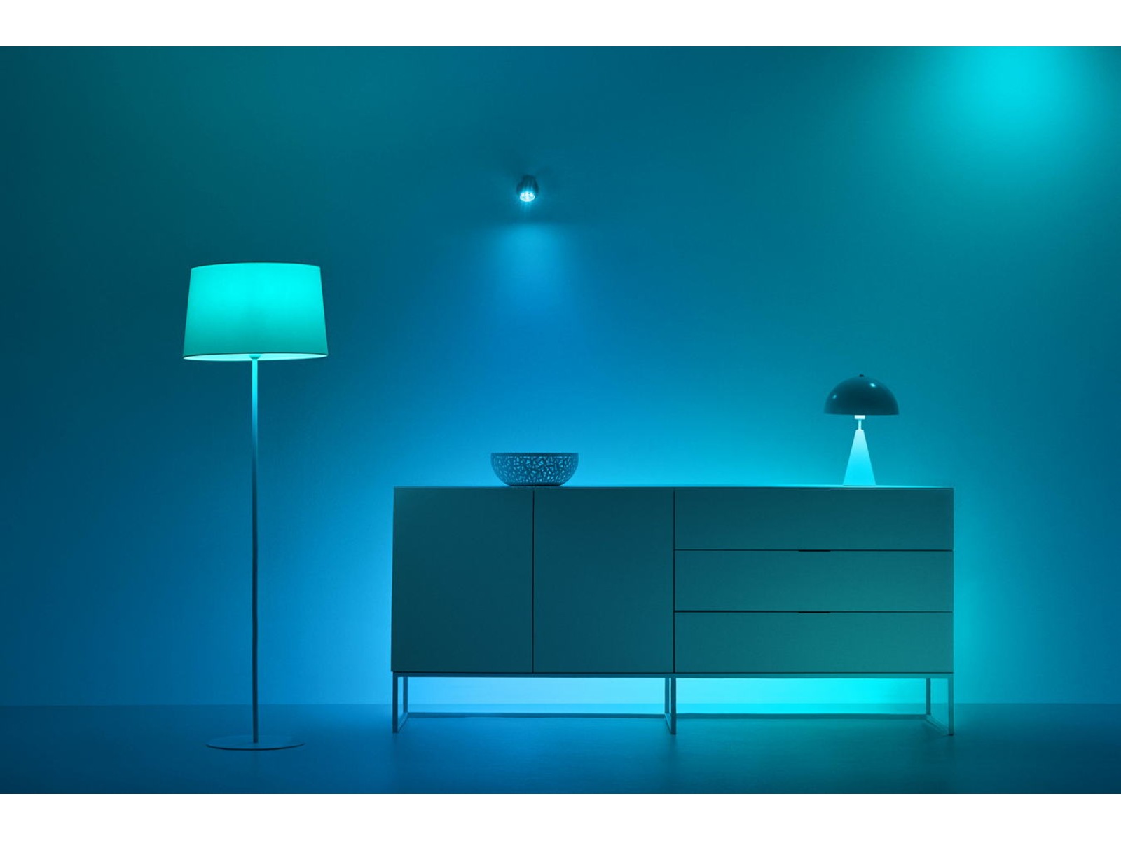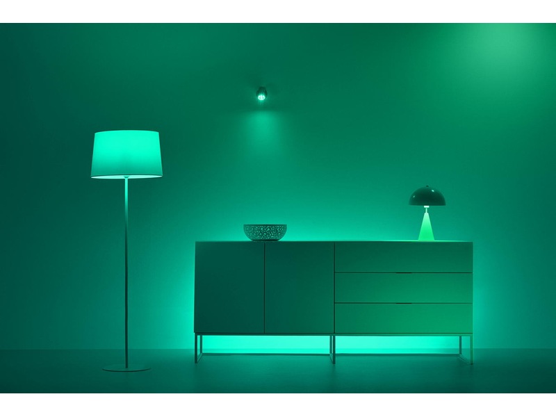 Med denne A80-pæren med ekstra høy lysstyrke kan lamper med E27-sokler endelig gi deg virkelig kraftig LED-belysning i 16 millioner farger og den riktige lystemperaturen. La deg fascinere av de dynamiske lysscenene og de unike funksjonene som bader hjemmet ditt i vakre flerfargede lyseffekter, som f.eks. simulerer havet eller en glødende peis, eller som skaper en glidende overgang i belysningen ved å følge døgnets naturlige lysmønster.