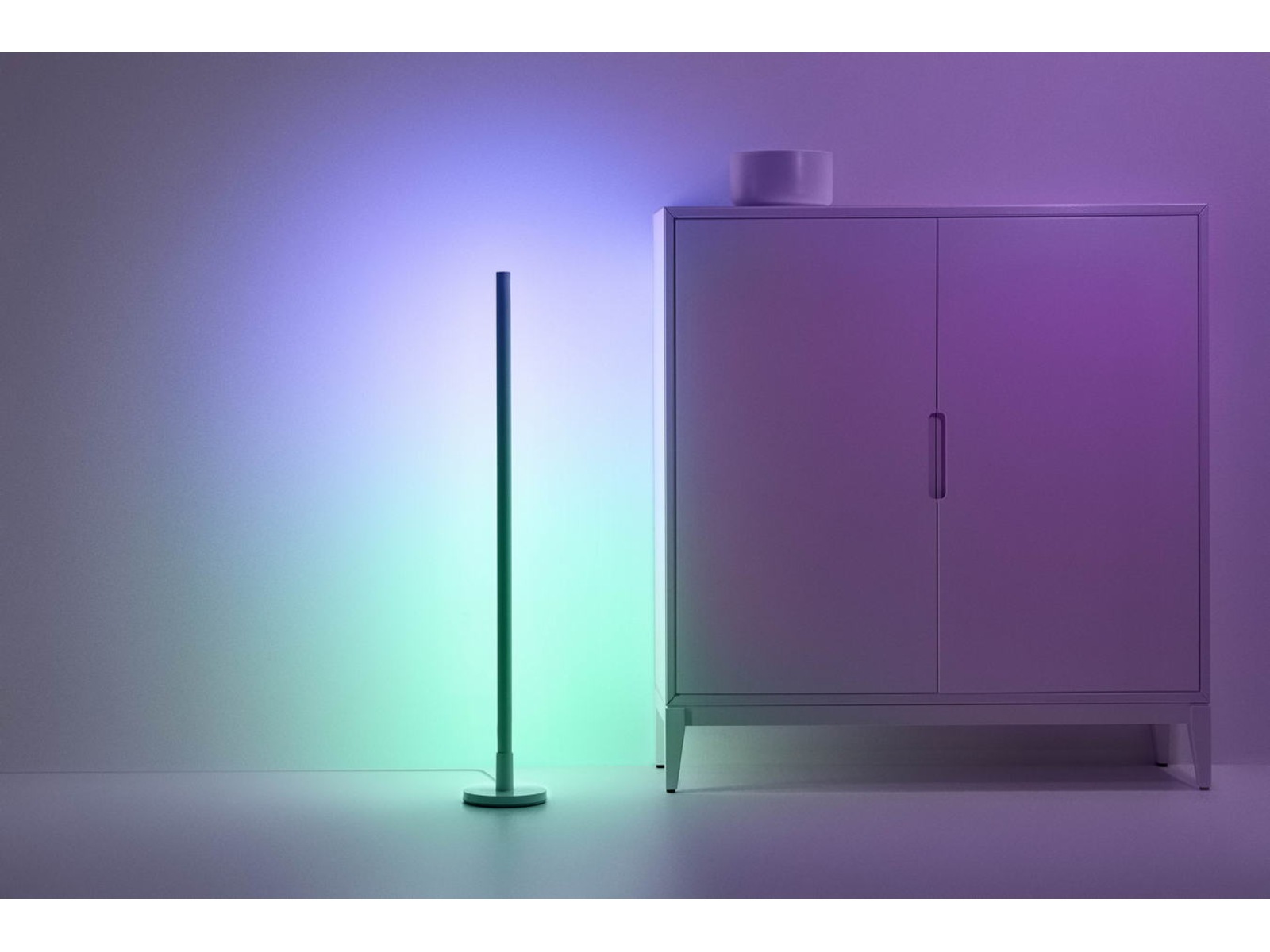 WiZ Pole-gulvlampen sprer fargerike, vidvinklede lyseffekter i hjemmet ditt med sin unike Dual zone-belysning.