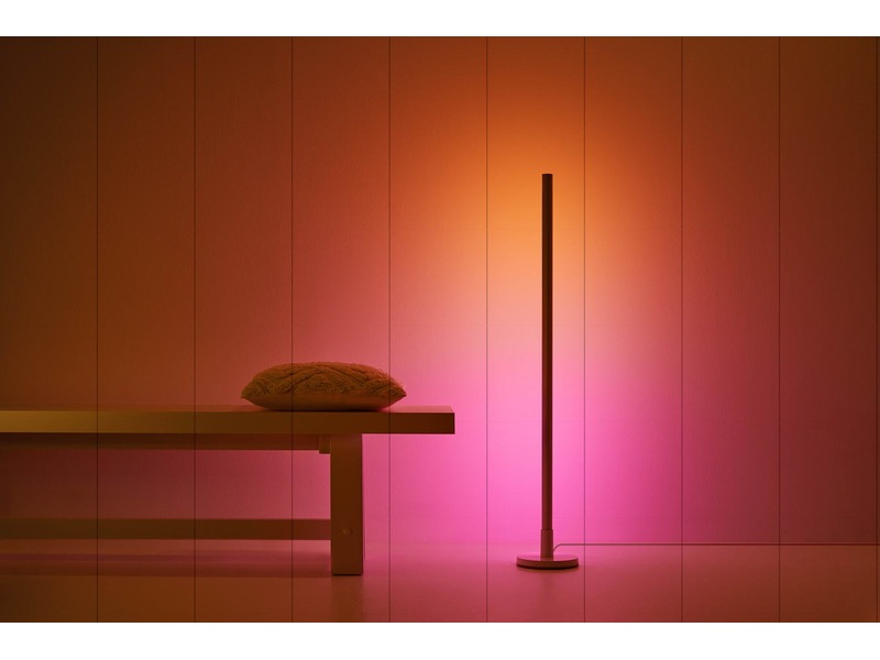 Du kan enten bruke den som gulvlampe som står på høykant i et hjørne, eller du kan ta av foten og legge lampen vannrett under et møbel eller bak TV-en. Uansett er denne slanke lampen flott for å skape en rik atmosfære takket være Dual zone-designen som gir en myk, skiftende belysning. Du kan velge mellom flere millioner farger og tusenvis av nyanser av hvitt lys, og hver av de to lyssonene kan justeres individuelt. Bruk kjølige toner av dagslys for å øke energinivået og konsentrasjonen, og juster til myke, varme toner av hvitt når du trenger å slappe av.