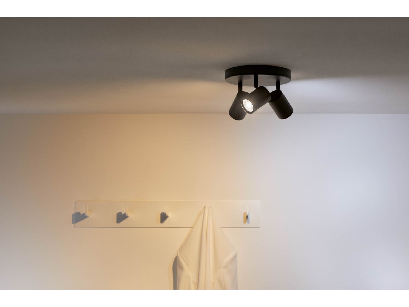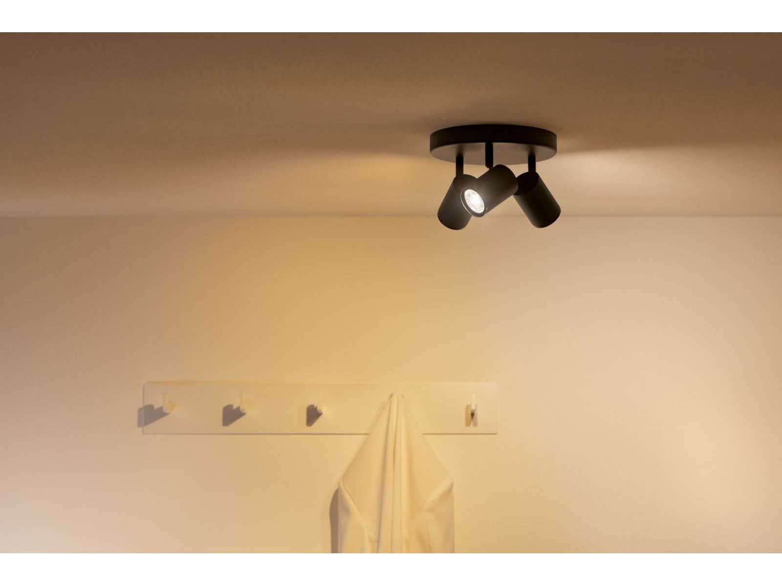 Denne moderne lampen har tre justerbare hoder gir lys til hjemmet ditt og setter fokus på dine favorittområder, kunstverk og verdigjenstander. Både deg og hjemmet ditt kommer til å elske muligheten for å kunne justere lyset til enhver av de 16 millioner fargene og velge den lysstyrke og lystemperatur du måtte ønske. La deg imponere av hvor behagelig og enkelt tilgjengelig dynamiske lysmoduser er og hvor flott det er hvis du bader hjemmet ditt i slående lyseffekter som etterligner havets bølger, en sprakende peis eller som følger dagslysets skiftende lys. Du kan enkelt styre smartbelysningen med den gratis og brukervennlige WiZ-appen eller bruke stemmestyring fra dine smartenheter. La WiZ hjelpe deg med å automatisere belysningsbehovene dine og ta vare på alle dine daglige rutiner. Det har aldri vært enklere og mer morsomt å alltid ha den riktige belysningen til enhver anledning.