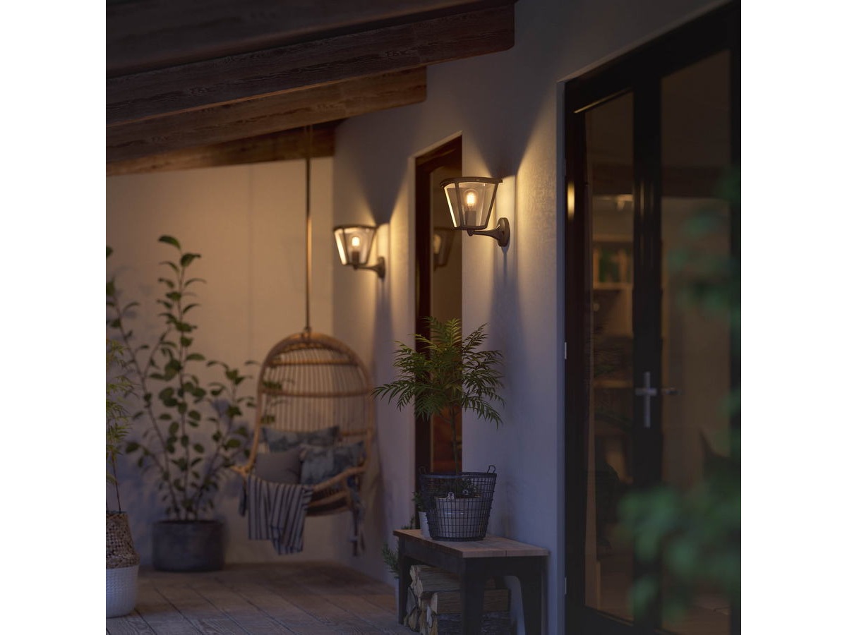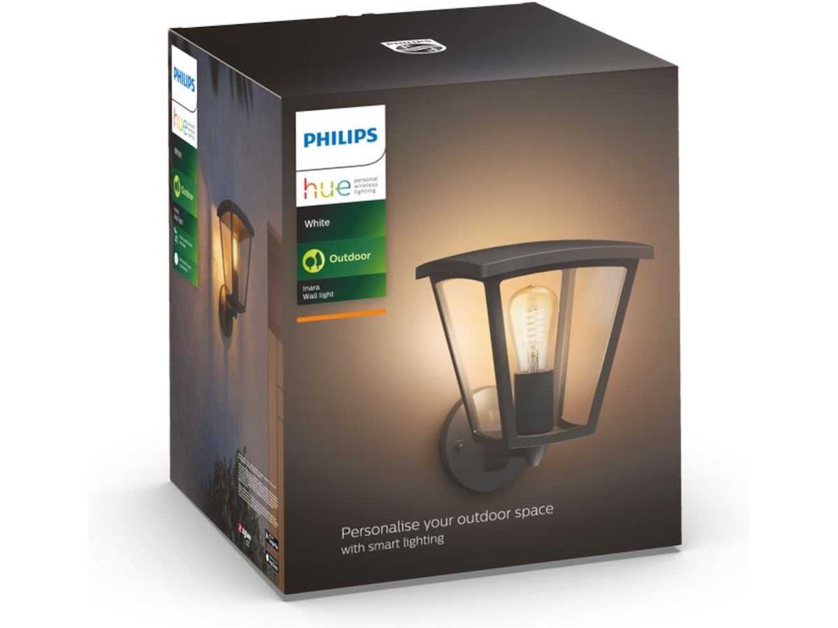 Philips Hue Inara er en vegglampe til utendørs bruk i et tradisjonelt stilrent design, som har alle funksjoner som det smarte belysningssystemet Hue har.