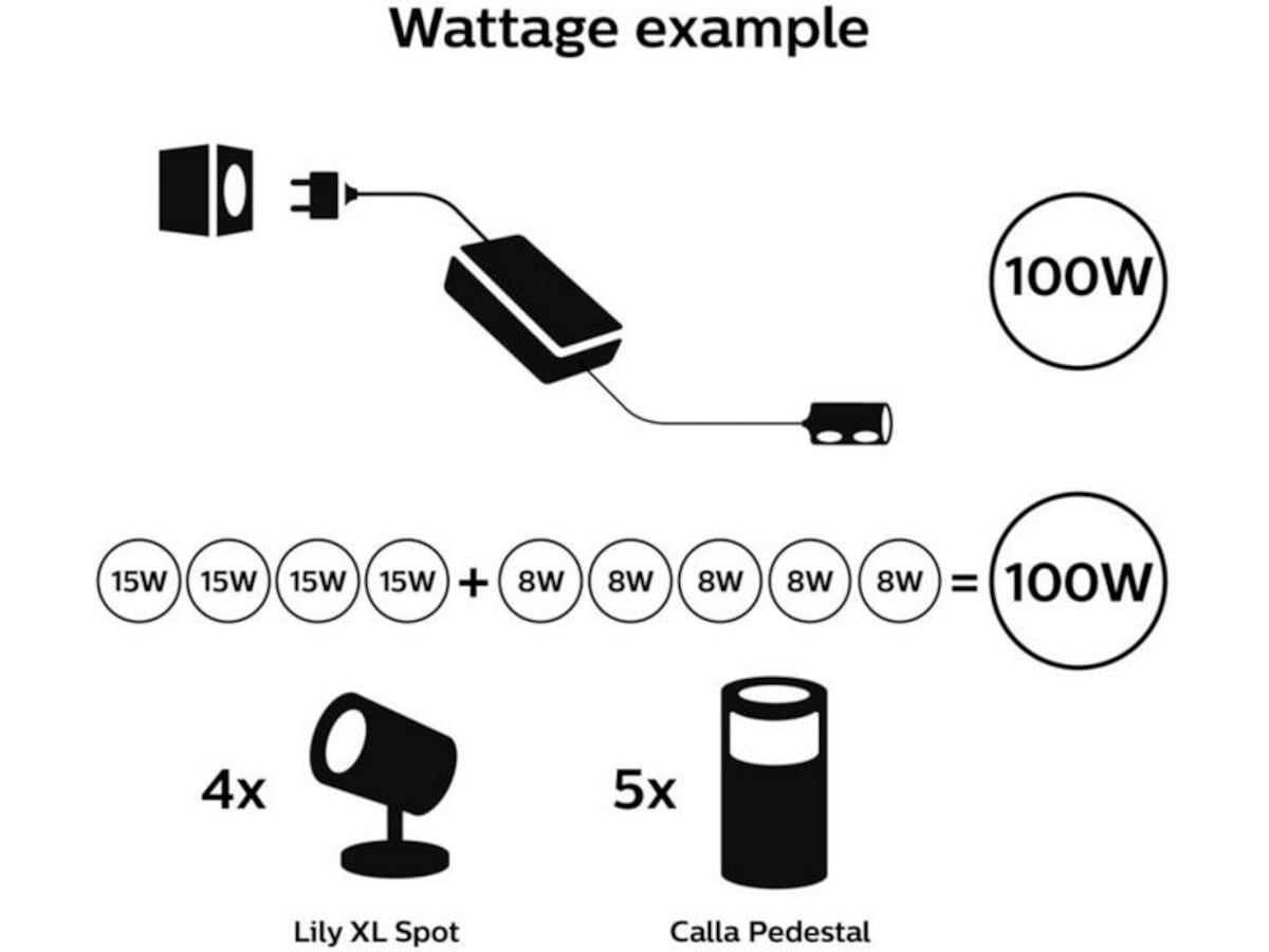 Få et intelligent belysningssystem med en strømforsyning til utendørsbruk, som lar deg legge til opptil 100 W med ulike lyskilder. Koble til to kabler, som til sammen blir opptil 30 meter, til en hvilken som helst 12 volts Philips hue-belysning på hvert tilkoblingspunkt, og legg til lysarmaturer helt opp til 100 W.