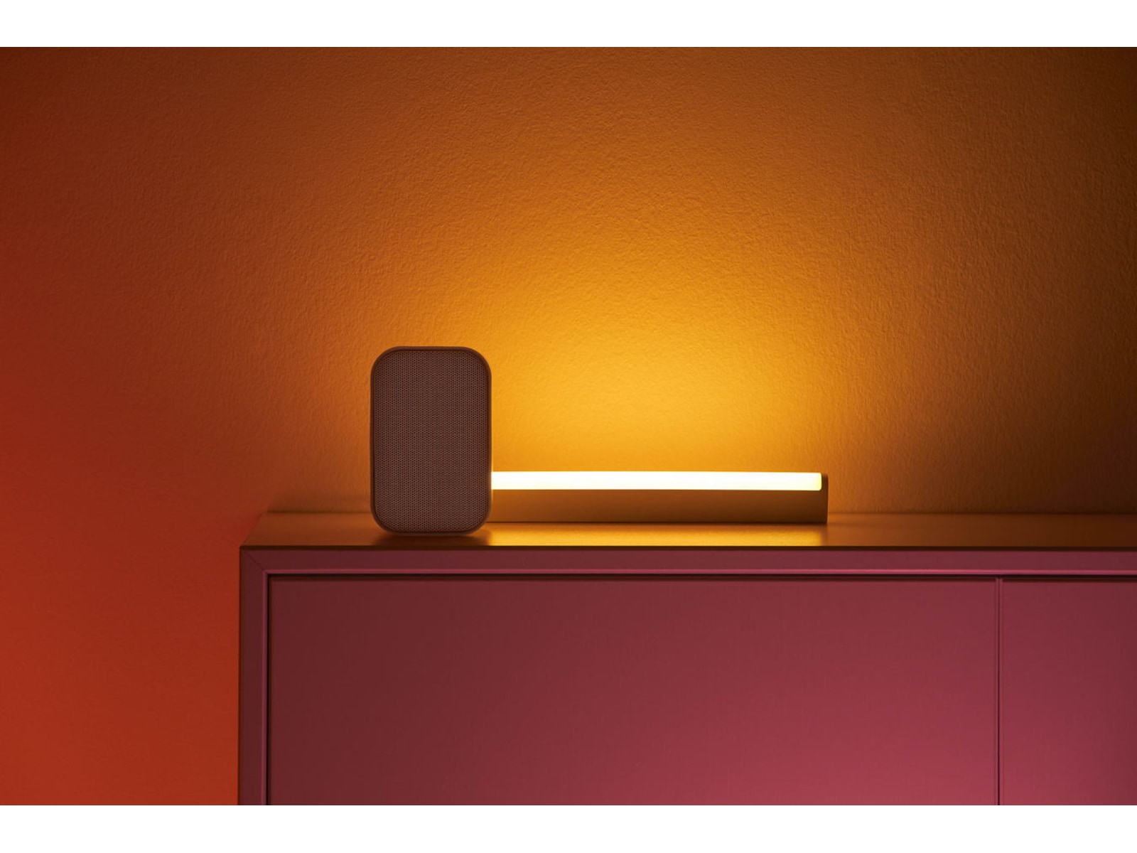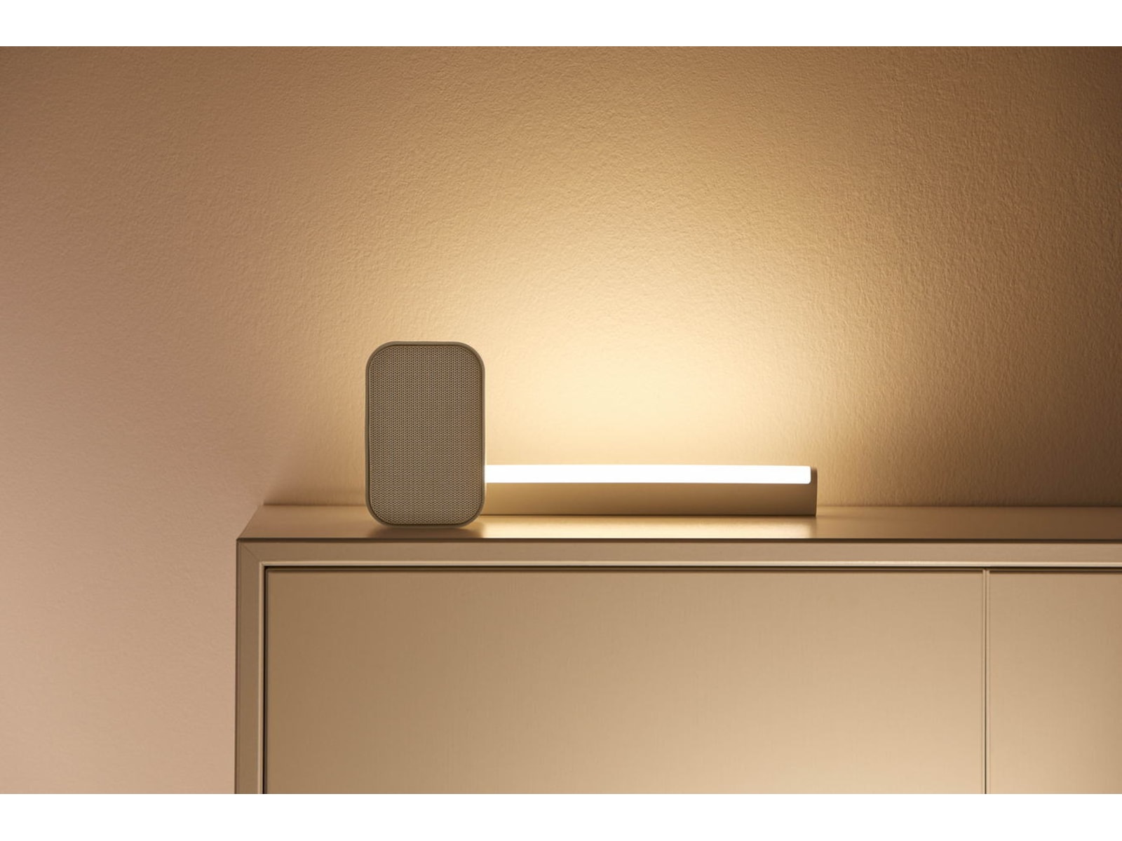 Den slanke lampen lyser opp alle slags rom med massevis av fargerikt lys, og den får lett plass i et lite rom. Ved å vippe lampen til en av sidene kan du enkelt justere lysvinkelen. Og hvis du ønsker enda mer lys, kan du fint koble sammen to av lampene for å doble lyseffekten. For å skape akkurat den rette stemningen for å matche humøret ditt eller den aktiviteten du holder på med, kan du velge mellom 16 millioner farger og alle slags nyanser av varmt til kjølig hvitt lys. Bruk kjølige toner av dagslys for å øke energinivået og konsentrasjonen, og juster til myke, varme toner av hvitt når du trenger å slappe av.