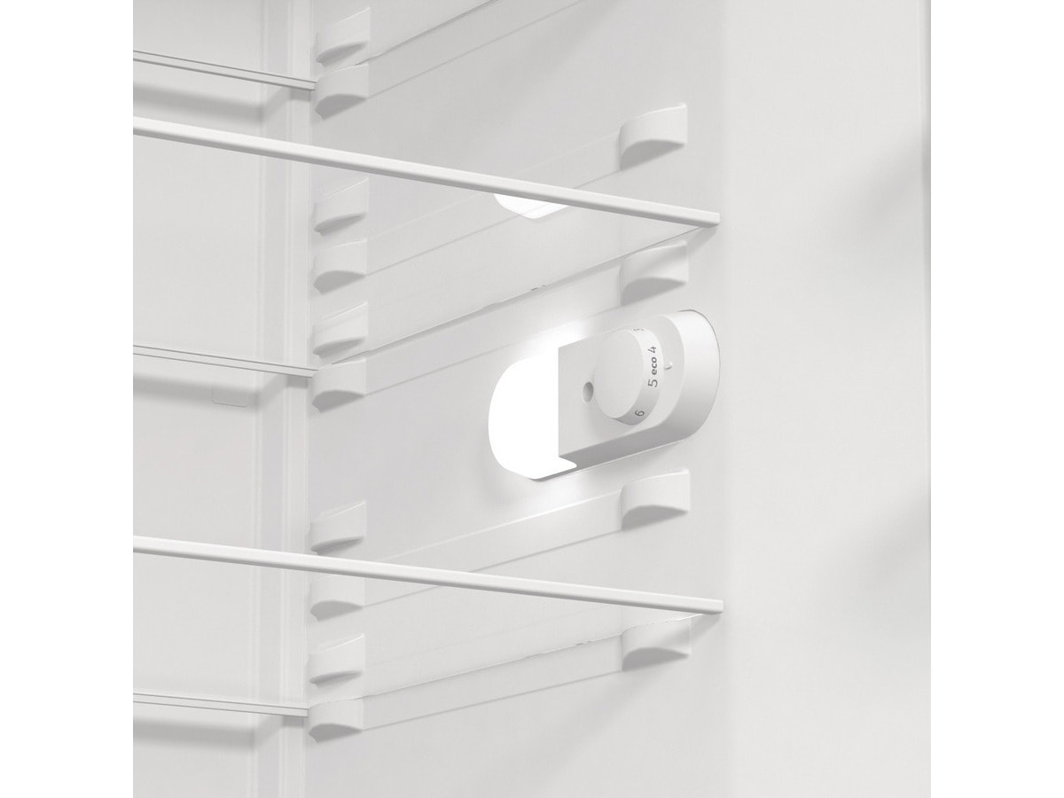 Takket være muligheten for åpning av kjøleskapet i rett vinkel kan alle hyller og skuffer trekkes helt ut. Denne løsningen er ideell for kjøleskap som er plassert langs en sidevegg, eller mot en kjøkkenbenk eller en annen del av innredningen.