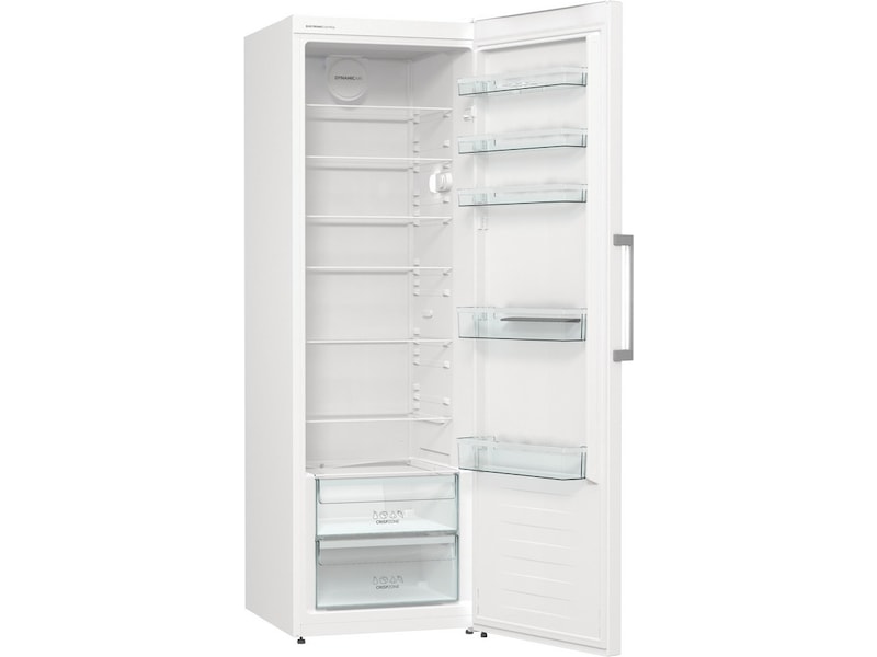 6 x hylle - justerbart glass, 3 x dørhylle, Dørlager for flasker, Skuff - CrispZone med fuktighetskontroll, 1 x hylle - glass