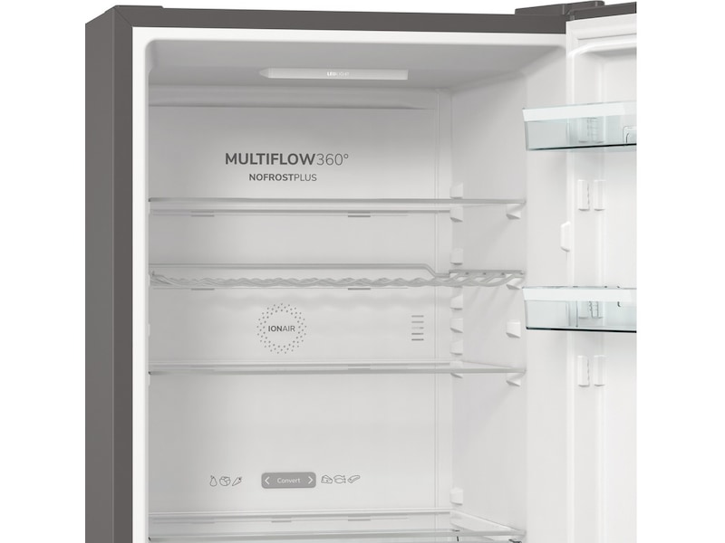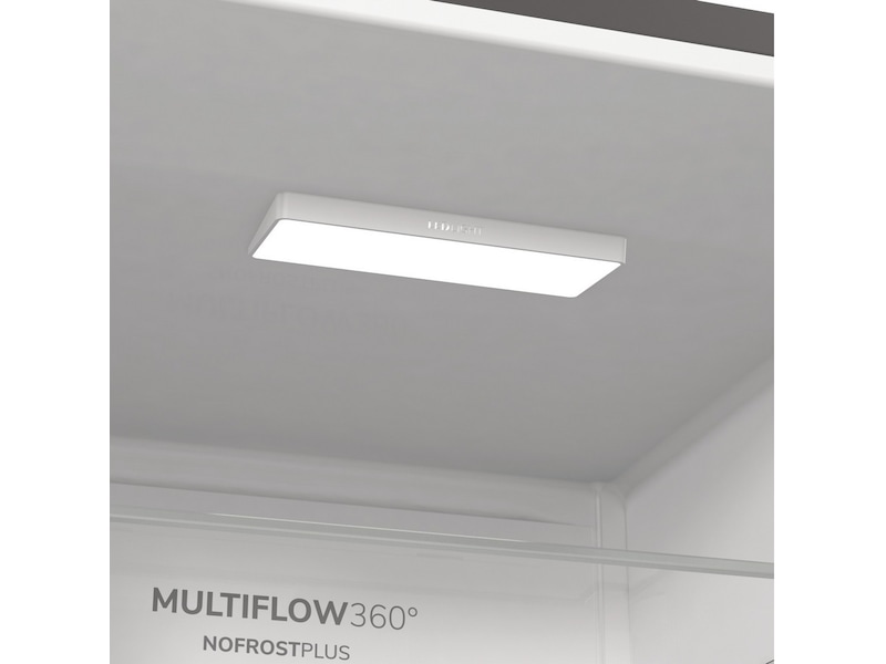 IonAir genererer negativt ladede ioner inne i apparatet som distribueres jevnt gjennom hele kjøleskapet takket være det nye MultiFlow 360°-systemet. Luft som er beriket med ioner bevarer smaken og fjerner ubehagelig duft.