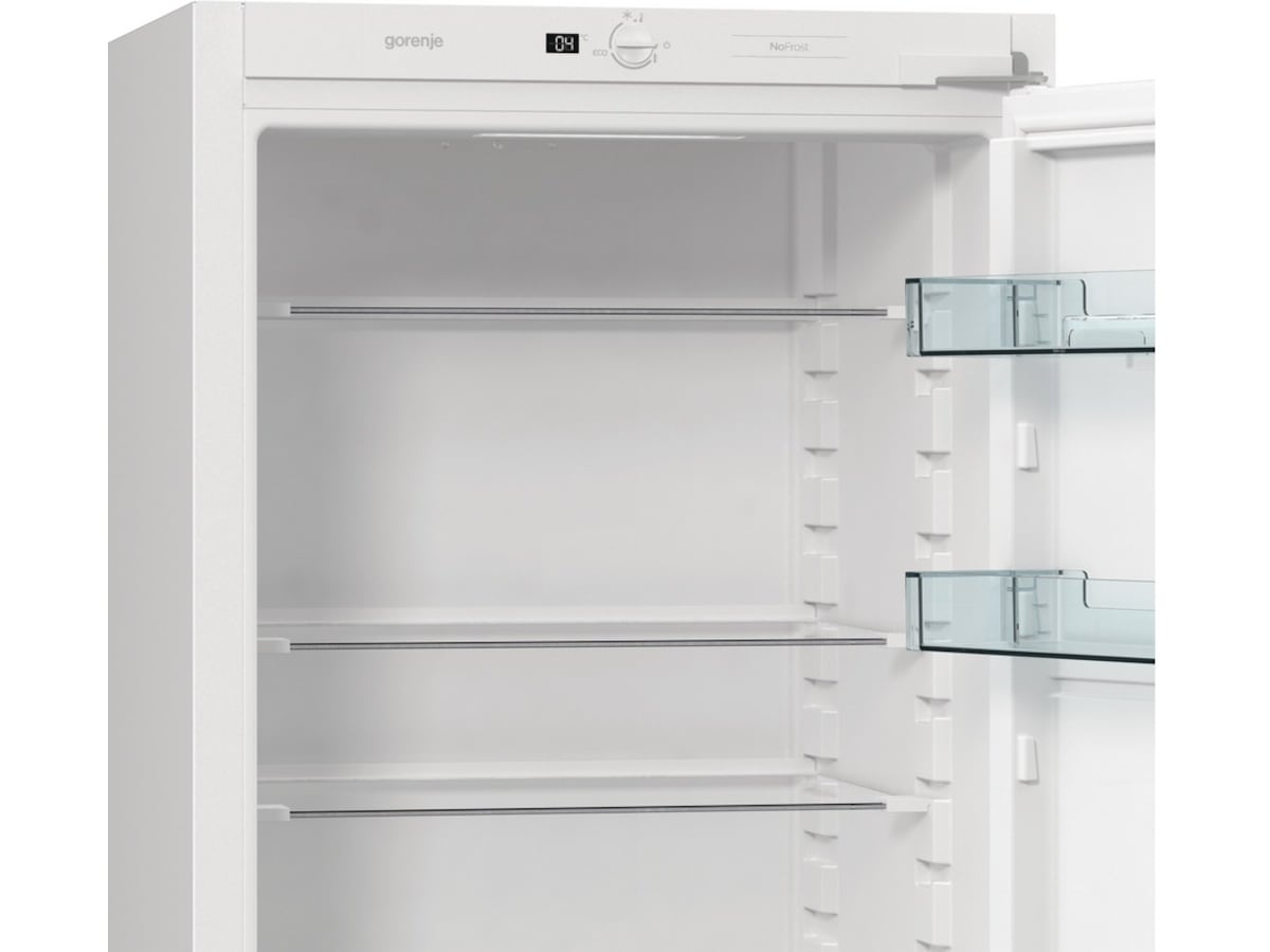 Kjøleskapsdøren har stor oppbevaringsplass til de største glass- og plastflaskene. En spesiell holder som sikrer at produktene står godt fast og forhindrer bevegelse eller skader på disse når døren er åpen eller lukket.