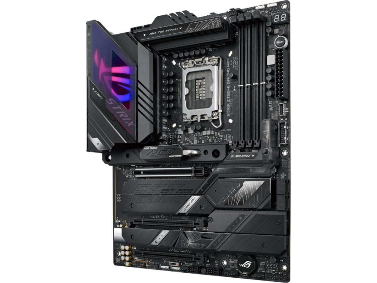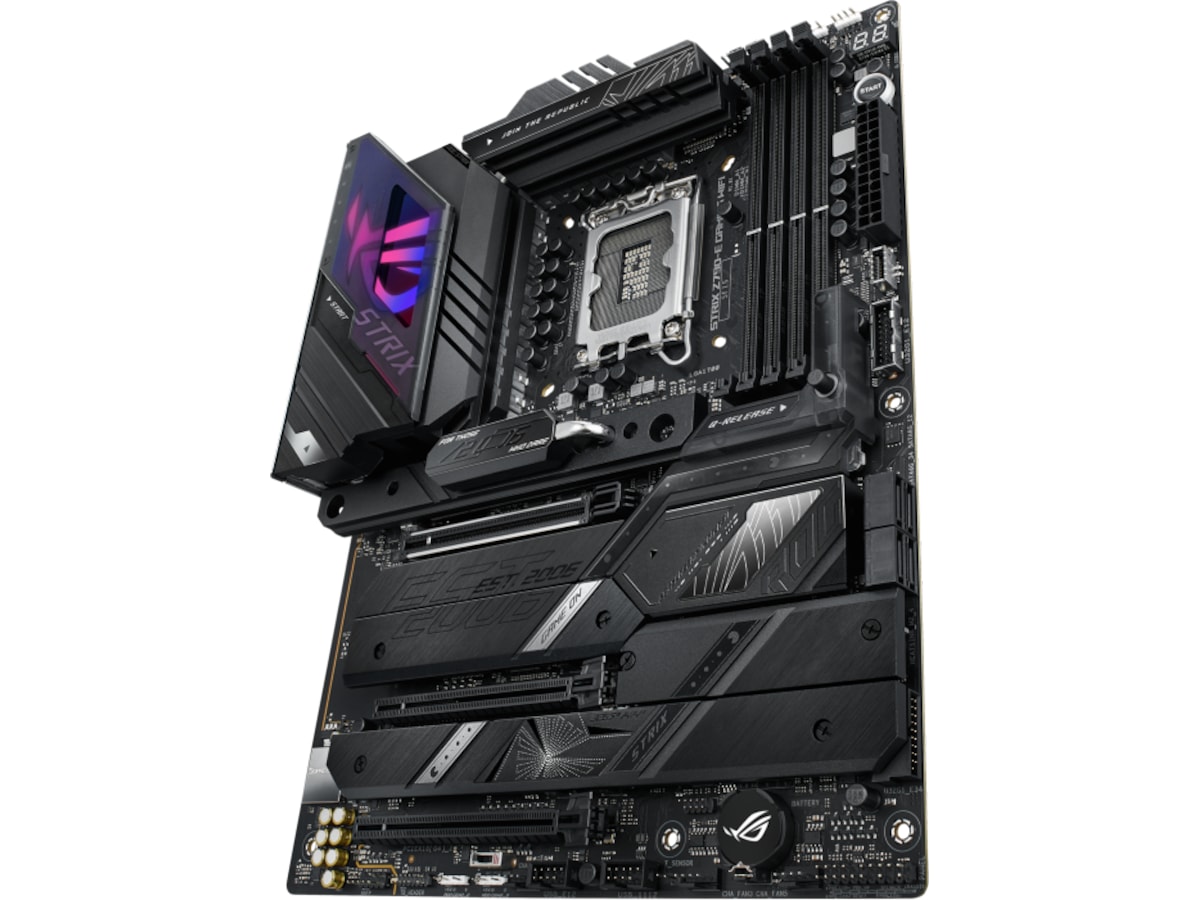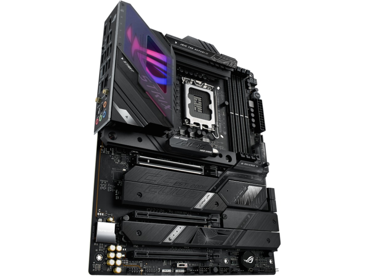 Strix Z790-E omfavner den nye standarden, og byr på full støtte for PCIe 5.0. Den øverste x16-plassen er Gen 5-klar, og den er beskyttet med en SafeSlot-festebrakett som tåler tyngden til de seneste grafikkortene. En av de innebygde M.2-plassene er klargjort for utrolige lese- og skrivehastigheter på 16 GB/s takket være PCIe 5.0-grensesnittet, mens alle de andre kan levere fortsatt imponerende 8 GB/s. Hver M.2-plass er dekket med kraftige kjøleribber som leder bort varme fra nestegenerasjons stasjoner.