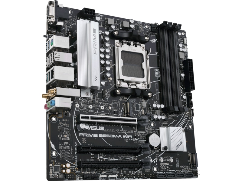 AMD B650 Micro-ATX-hovedkort, DDR5, PCIe 5.0 M.2-støtte, Realtek 2.5Gb Ethernet, Wi-Fi 6, DisplayPort, VGA, HDMI®, SATA 6 Gbps, USB 3.2 Gen 2-porter, USB 3.2 Gen 1 Type- C®, BIOS FlashBack™, Arua Sync