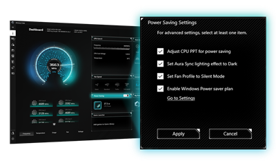 Strømsparingsfunksjonen inneholder flere innstillinger som lar deg optimalisere strømforbruket og maksimere strømsparingen.Du kan angi en grense for CPU-effekt, dempe Aura-belysningen og stille inn vifteprofilen i en strømsparende modus.Du kan også slå på strømsparingsplanen som er bygd inn i Microsoft Windows.