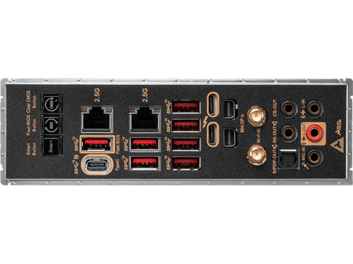 - Maksimalt 5 x M.2-kontakter: Fem innebygde M.2-kontakter inkludert én PCIe 5.0-løsning for maksimal lagringsytelse. Den tosidige Shield Frozr-designen holder M.2 SSD-er trygge samtidig som den forebygger struping, noe som gjør at de kjører raskere.