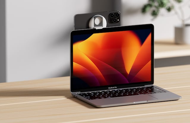 Bare plasser din MagSafe-kompatible iPhone (iPhone 12 og nyere) mot det kraftige magnetiske festet og begynn å chatte eller streame håndfritt. Det er en sømløs måte å koble sammen en iPhone og bærbar Mac på for å forbedre videosamtaleopplevelsen.