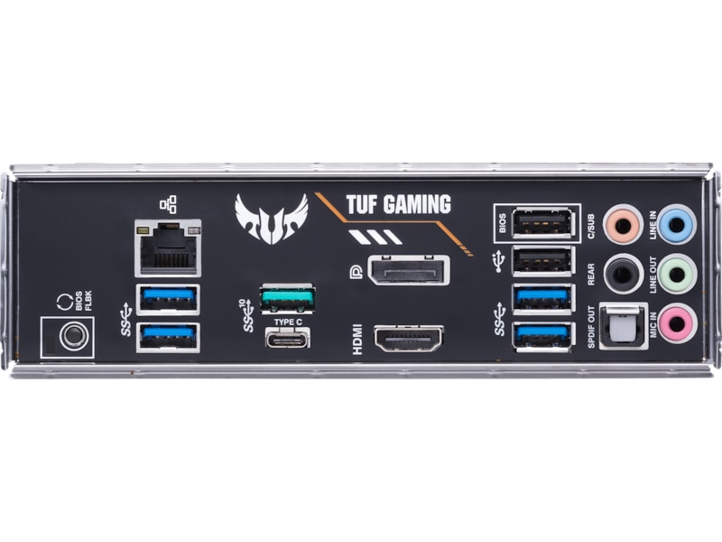 1 x lydutlinje - minijakk, 1 x lydutlinje (senter/subbasshøyttaler) - minijakk, 1 x USB-C Gen2, 4 x USB 3.2 Gen 1, 1 x mikrofon - minijakk, 1 x HDMI, 2 x USB 2.0, 1 x USB 3.2 Gen 2, 1 x LAN (Gigabit Ethernet), 1 x lydutlinje (bakre) - minijakk, 1 x lydinnlinje - minijakk, 1 x DisplayPort