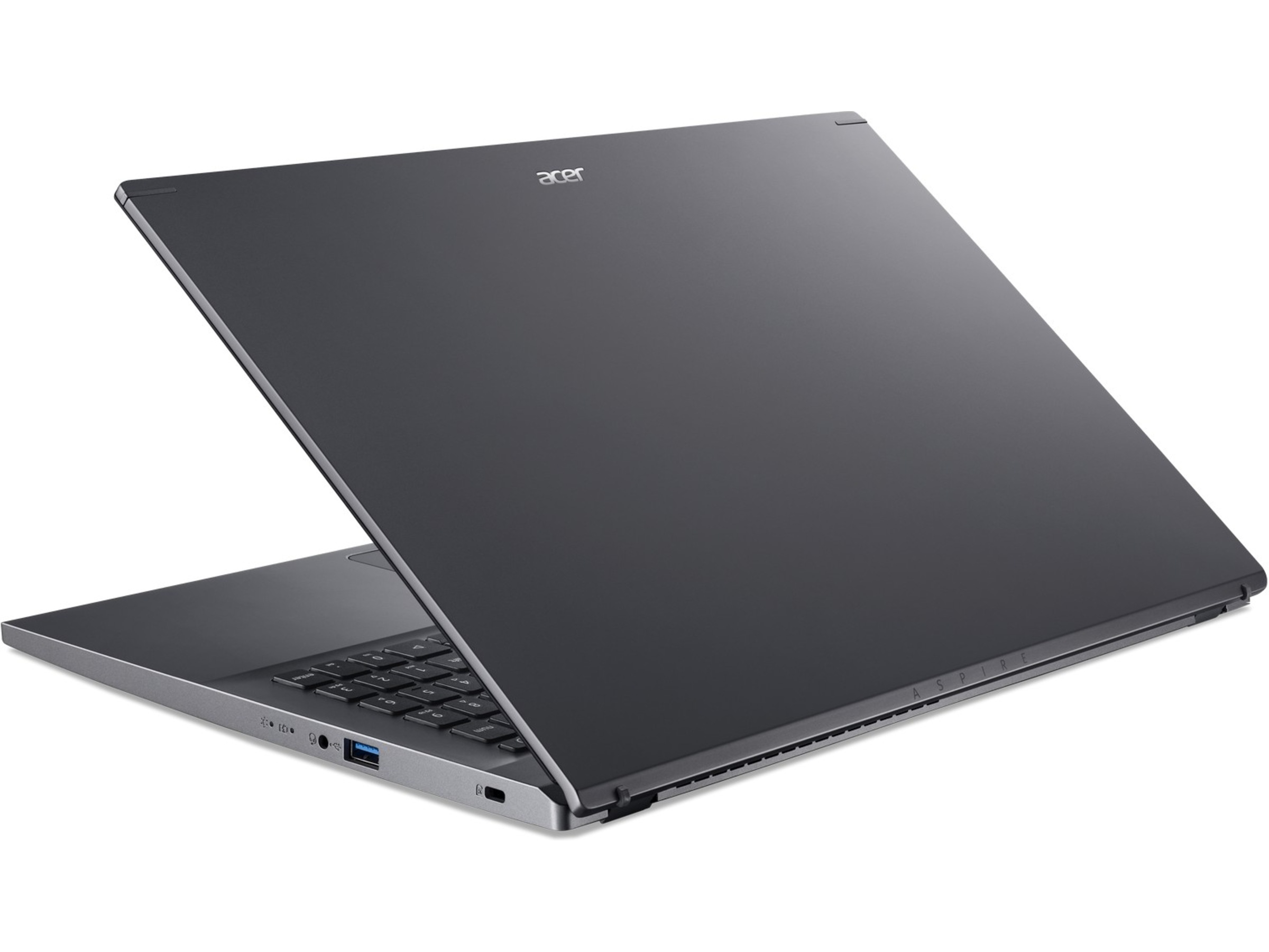 Aspire 5 har et metalldeksel og et hevet hengseldesign med ergonomiske funksjoner. Den er tilgjengelig i en stålgrå farge som matcher stilen din, og et bakgrunnsbelyst tastatur slik at du kan gjøre mer uansett hvor du er, når som helst.
