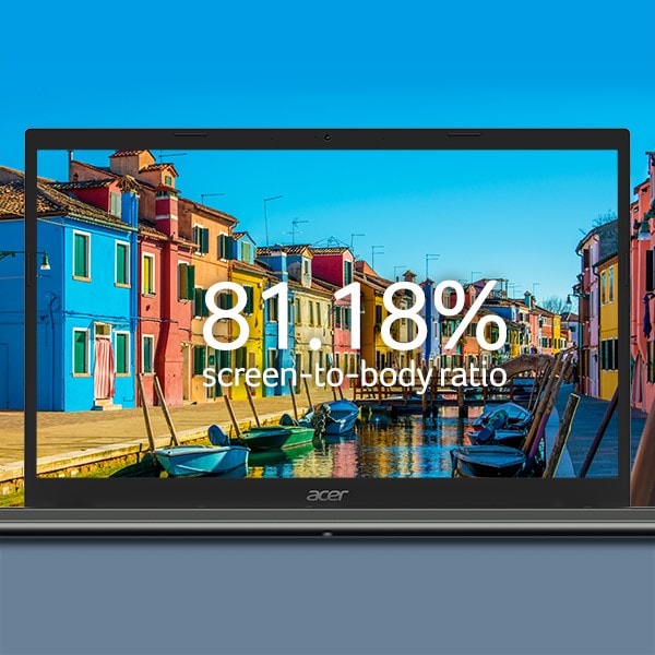 Skap det du ønsker på en 15,6-tommers full HD IPS SlimBezel-skjerm. Den har 81,18 % skjerm-til-ramme-forhold, Acer Color Intelligence™ samt Acer BlueLightShield™ for dynamisk fargeoptimalisering og seerkomfort.