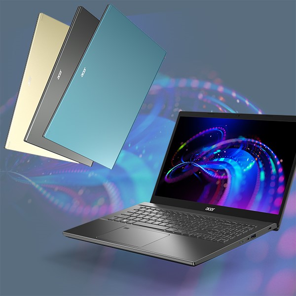 Aspire 5 drives av 12. generasjons Intel® Core™ i7-prosessor for fleroppgavekjøring og produktivitet, med tokanals 32 GB DDR4-minne og 1024 GB PCIe NVMe SSD.