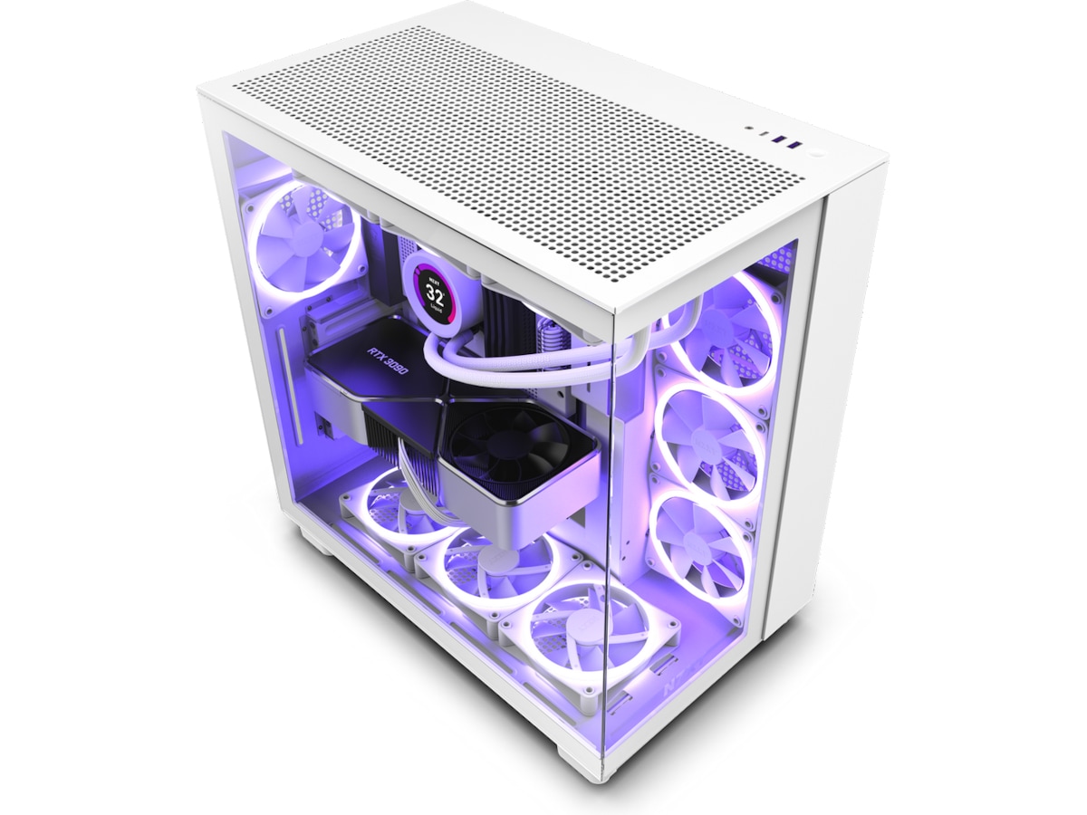 H9 Flow er designet for å kjøle ned kraftige GPU-er med sine ekspansive kjølekapasiteter, med kapasitet for ti vifter og flere 360 mm-radiatorer, og det perforerte toppanelet tar kjølingen enda lenger.