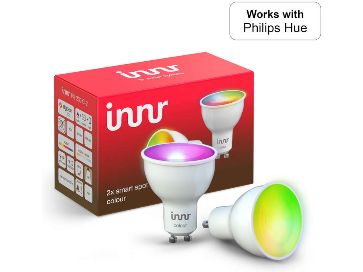 Innr smart spot GU10 farge 2-pakn. – fungerer med Philips Hue