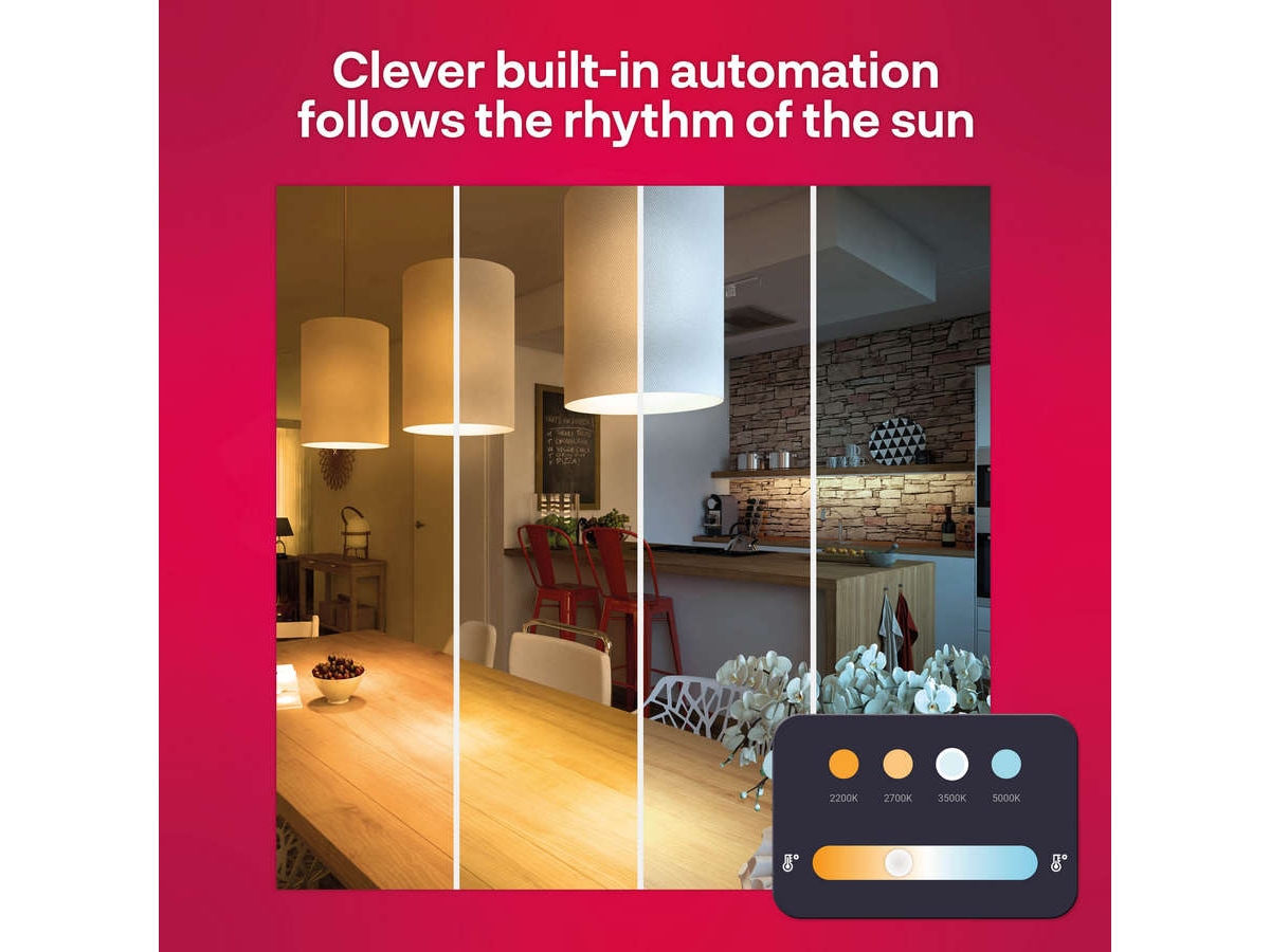 Med opptil 16 millioner lysfarger å velge mellom har det aldri vært enklere å gi hjemmet et spesielt preg. Velg farge enkelt ved hjelp av smarttelefonen, stemmen eller smartbryteren.