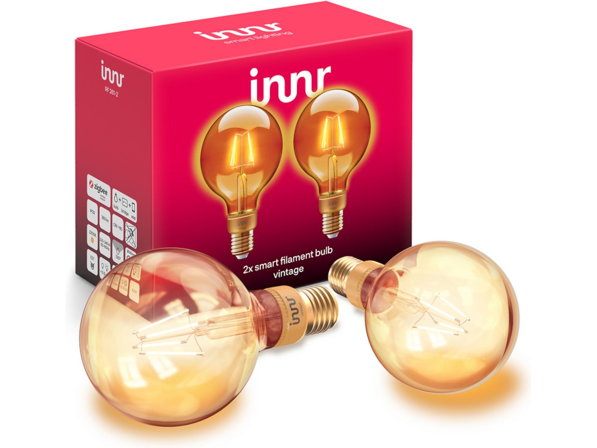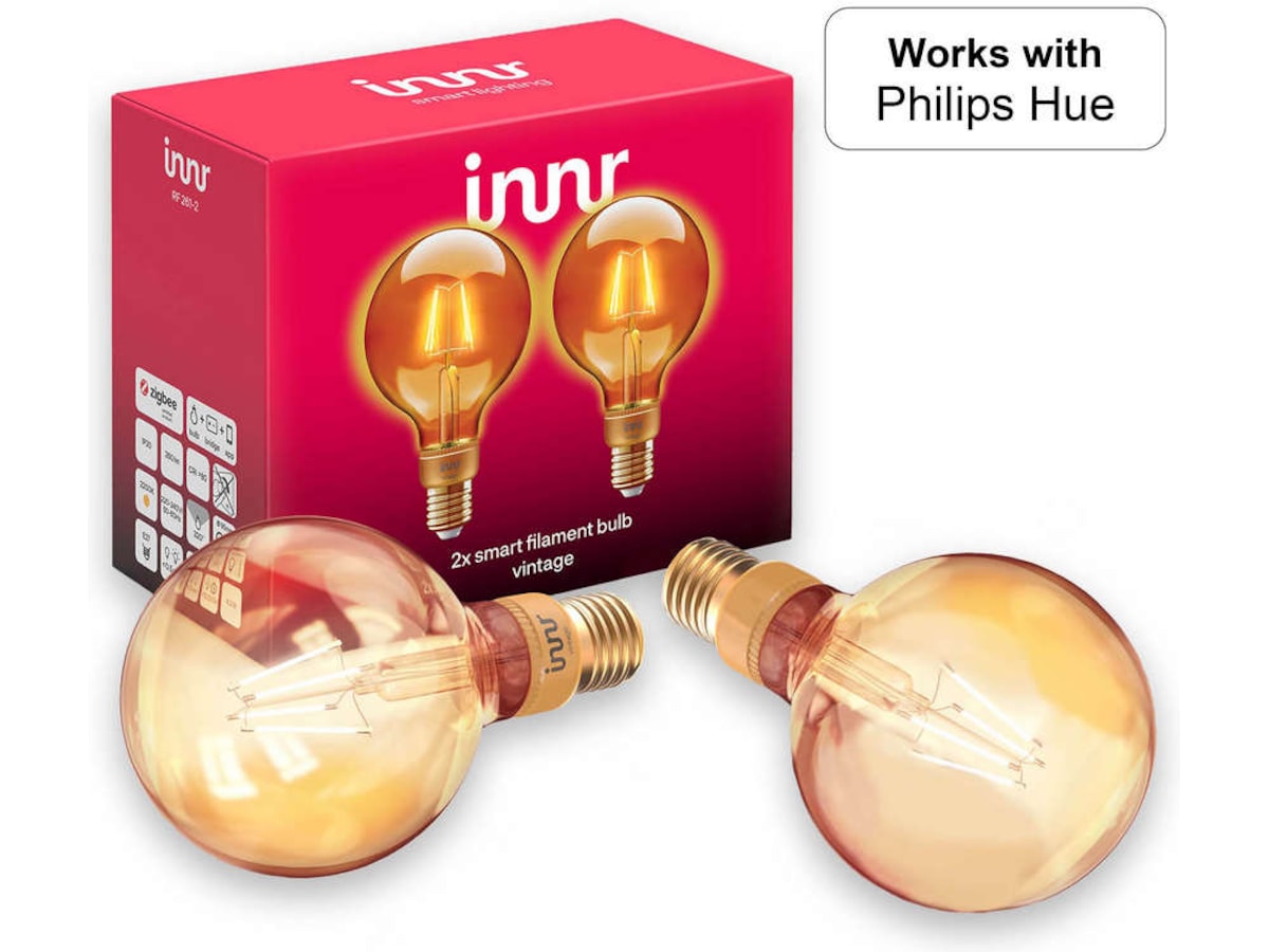 Innr smart pære E27 filament Globe 2 pack - fungerer med Philips Hue