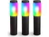 Tre smarte sokkellys med 16 millioner farger for utendørs bruk
