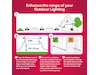 Inkludert integrert jordspyd, kabler, kontrollboks og adapter, slik at du kan komme i gang med det samme. Alle lys som er koblet til den samme kontrollboksen, betjenes som en gruppe