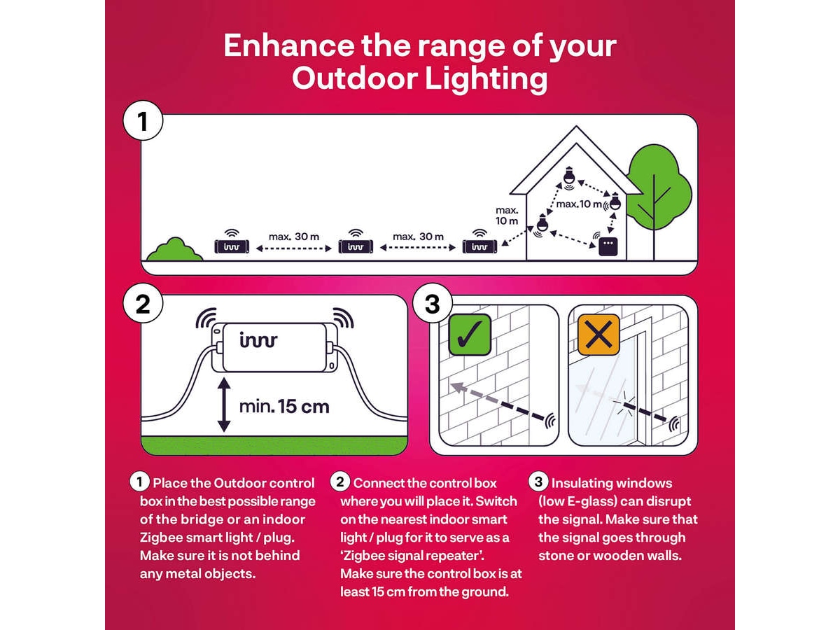 Innr smart utendørs sokkellys farge 3-pakn. – fungerer med Philips Hue