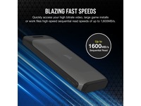 Last raskt inn alle videoene dine med høy bithastighet, installer store spill eller overfør de store arbeidsfilene dine smertefritt takket være utrolig rask sekvensiell lese-/skrivehastighet på opptil 1600 MB/s.